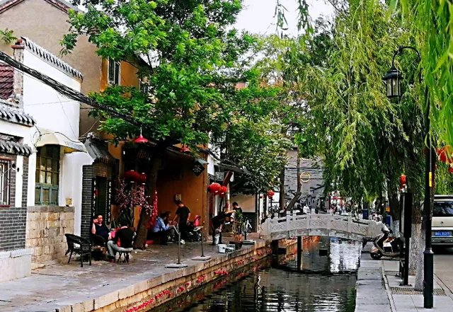 曲水河在靜靜地流淌,河水清澈,魚兒在水中嬉戲撒歡,岸邊楊柳青青,春風(fēng)剪裁的細(xì)葉在秋風(fēng)中搖曳,有人踱步,有人品茶,有人輕聲細(xì)語,難見游人大聲喧囂,有著江南水鄉(xiāng)的靜謐,這在其他景區(qū)是難以想象,與一街之隔的芙蓉街人聲鼎沸形成鮮明的對照。據(jù)說這河水是從珍珠泉和王府池子匯聚而來,彎彎曲曲,滋潤了這片街區(qū)。既然稱為曲水亭街,應(yīng)該有亭臺樓閣吧,在哪呢?只見許多民宿都是建在高臺上,是否當(dāng)年這里還有水患,如同黃河邊上的高臺民居?濟南府作為省會都市是從明朝開始,還有人說這片街區(qū)原來是明德王府的宅園,后來這里逐漸擴大并有了文化的浸潤,大約在清末民初時古書舊書交易的書店充斥河的兩岸,山東省圖書館副館長、蒲松齡研究專家路大荒故居也在這里,如果你仔細(xì)尋覓還是能看到,說不定還會與他的后人在街角側(cè)身而遇。