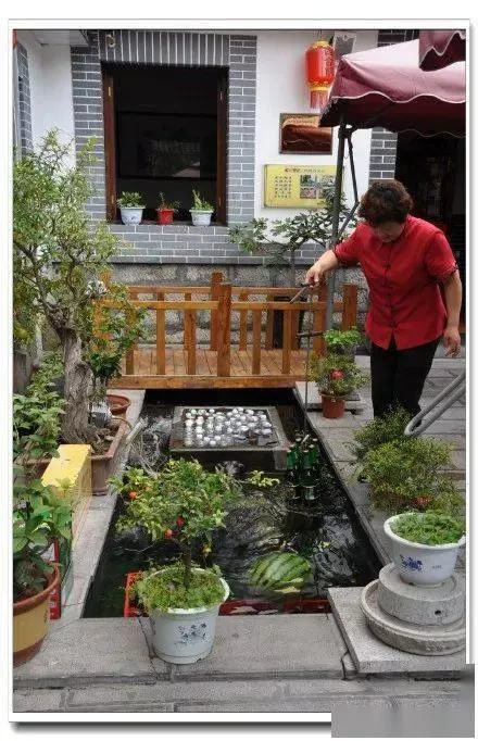 一步一戶,一戶一泉,一泉一景。走進僻靜的小巷,縱橫阡陌,給我驚喜的是潔凈小巷里掛滿了喜慶的大紅燈籠,這些獨門獨戶的小院是對舊民居進行了翻修,不僅保持了原有的布局,還改造成了招待四面八方客人的魯菜餐館,門口的牌匾上冠以“曲水亭X號”,每個院落都泉眼噴涌,且有名有姓,歷史悠久,記錄著每一座院落的春夏秋冬。我們隨意走進一家菜館,院內(nèi)的服務(wù)員非常熱情,我們說不吃飯看看可以嗎?得到的回答是隨便看,而且還引領(lǐng)我們看墻上詳細(xì)的說明。這家的泉水在曲水亭街上是名門望族,名曰“仁義泉”,一東一西,仁義相望,清泉汩汩,有意思的是店家把泉水池子當(dāng)成了天然冰箱,將賓客們即要飲食的啤酒飲料和西瓜浸泡在泉水里,自然冷藏,自成泉城一景。當(dāng)我們要離開時,服務(wù)員特地為我們表演一番,把一盒啤酒從冰涼的泉水里提起,看得我們十分驚艷。出門的時候又看到一個送菜的伙計笑瞇瞇的,端著一盤菜從胡同深處的廚房走來,立刻為幽深的胡同增添了一股煙火之氣。