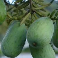 香榧為常綠喬木,屬紫杉科榧屬,是世界稀有干果之一。香榧在我國(guó) 為原產(chǎn),浙江是原產(chǎn)地之一,會(huì)稽山區(qū)山高嶺峻,云霧繚繞,溫濕涼爽, 適宜香榧樹(shù)生長(zhǎng),是浙江香榧的主產(chǎn)區(qū),已有1300多年的栽培歷史。榧 樹(shù)雌雄異株,有性繁殖全周期需29個(gè)月,一代果實(shí)從花芽原基形成到果 實(shí)形態(tài)成熟,需經(jīng)歷三個(gè)年頭,每年的5至9月,同時(shí)有兩代果實(shí)在樹(shù)上 生長(zhǎng)發(fā)育,還有新一代果實(shí)的花芽原基在分化發(fā)育,人們稱之為“三代 同樹(shù)”。香榧樹(shù)壽命長(zhǎng)達(dá)四、五百年,有“壽星樹(shù)”之稱。