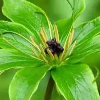 植物形態(tài) 多年生草本。葉6~10片輪生,葉柄長5~20mm,葉片厚紙質(zhì),披針形、卵狀長圓形至倒卵形,長5~11cm ,寬2~4.5cm?;ü那o頂抽出,頂生一花;花兩性,萼片披針形或長卵形,綠色,長3.5~6cm;花被片線形而略帶披針形,黃色,長為萼片的1/2左右至近等長中部以上寬2~6mm;雄蕊8~10,花藥長1~1.5cm,花絲比藥短,藥隔突出部分1~2mm?;ㄆ?~7月,果期9~10月。