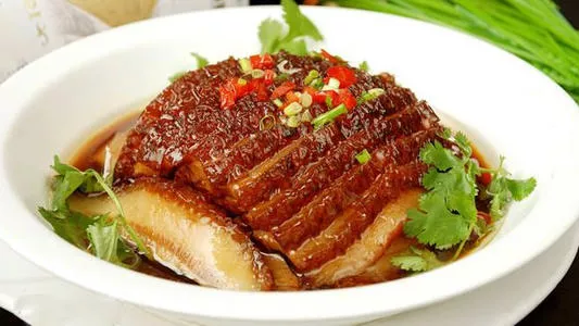 沙溪扣肉是“沙溪三件寶”其中之一,早已飄香大地,更是因其“肥而不膩、入口即化”的美味被當(dāng)?shù)厝俗鸱Q為“菜王”,成為中山沙溪著名的傳統(tǒng)名菜,屬于粵菜系,也是中山一道著名的宴席名菜。這道沙溪鎮(zhèn)所有酒樓食店甚至一般家庭均懂得制作的地方名萊,沙溪扣肉選用肥瘦適中的隔沙五花腩肉,工藝更要按照工序慢工細(xì)作,才能做到味香肉滑肥而不膩,入口即化。在沙溪民俗中,隆都人辦筵席時(shí),宴席的菜肴中必有沙溪扣肉。沙溪當(dāng)?shù)厝藢?duì)這道傳統(tǒng)名菜非常喜歡,不僅因其甘香馥郁,更因其纏纏綿綿,漸漸濃郁的口感勾起人們對(duì)過(guò)去青蔥歲月時(shí)初戀的追憶。一碗沙