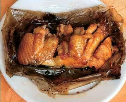 梧州紙包雞是廣西梧州著名的地方特色菜,屬于桂菜,選用岑溪所產(chǎn)的三黃雞做主料,用老抽醬油、精鹽、白糖、味精、汾酒、麻油、五香粉、胡椒粉、蔥白粒等腌制,再用玉扣紙逐件包好,放入花生油鍋炸至剛熟而成。開包時色澤金黃,油潤明亮,氣味芳香;食用時鮮嫩甘滑,原汁原味,醇厚不膩;入口甘、滑、甜、軟,食后齒頰留香。紙包雞起源清朝咸豐年間,迄今已有150年歷史,作為梧州飲食文化的名片,紙包雞曾獲得“中國一絕”的美譽,入選廣西壯族自治區(qū)非物質(zhì)文化遺產(chǎn)名錄。紙包雞入選廣西商務(wù)廳評選的“20道廣西桂菜特色名菜”名單,更是被中國烹