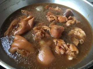 上林黑豆豬腳煲是南寧上林特色特色菜,凡到過(guò)上林縣做客的游人,都品嘗過(guò)這道特色菜。黑豆豬腳煲選用上林本地出產(chǎn)的有機(jī)黑豆與豬腳、八角、鹽等調(diào)料一起放入高壓鍋中煲煮,待豬腳和黑豆酥爛后即成。這道菜中的黑豆綿里帶沙、柔軟清香,讓人百吃不厭,被譽(yù)為上林縣十大特色菜肴之一。黑豆不但營(yíng)養(yǎng)豐富,蛋白質(zhì)含量高,而燉爛的豬腳膠質(zhì)鈣十分豐富,具有補(bǔ)鈣、美容的功效。所以,黑豆煲豬腳,食補(bǔ)與藥補(bǔ)相得益彰。