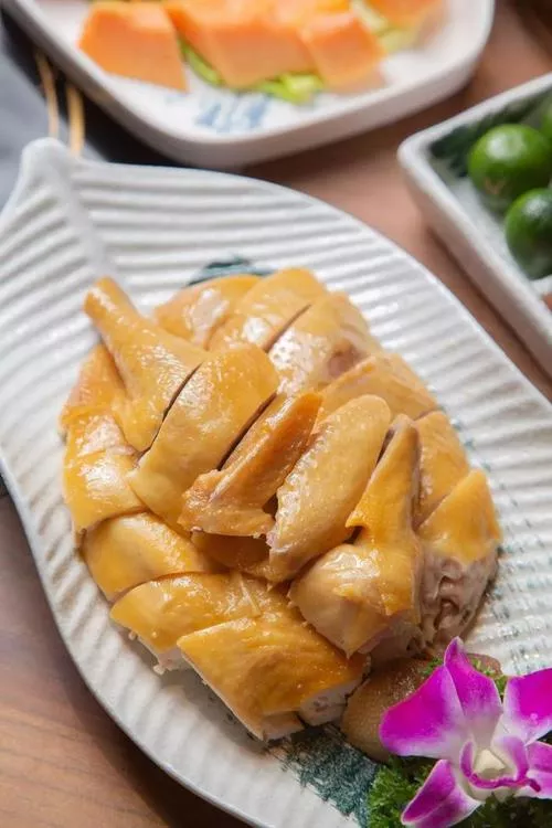 海南白切文昌雞是海南省文昌市地區(qū)最負(fù)盛名的特色傳統(tǒng)名菜,屬于海南菜,與加積鴨、東山羊、和樂蟹并稱為“海南四大名菜”,更是位居海南四大名菜之首,在海南有無雞不成宴的說法。海南文昌雞具有皮薄嫩滑、肉味馥香的特點(diǎn),其烹調(diào)方法有很多種,其中以白切文昌雞最為出名,最能保持文昌雞原味特點(diǎn),其做法看似間單,但做法講究。白切雞的調(diào)料非常具有海南特色,主要有生姜、蒜泥、香菜、精鹽,雞湯以及桔子汁組成,橘子汁選用海南本土生長(zhǎng)的小橘子,汁酸甜可口,融和了蒜頭,香菜,蒜泥等。成菜特點(diǎn)是表皮酥薄,肥而不膩,讓人垂涎欲滴。白切文昌雞