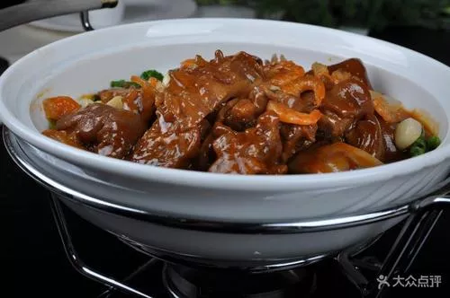 海參烀蹄子是陜西著名的傳統(tǒng)風(fēng)味菜肴,因海參綿潤(rùn),豬蹄紅亮黏爛,湯汁濃醇,成為陜西十大經(jīng)典名菜之一,是陜西官府菜的代表菜之一。海參烀蹄子選料講究,加上采用陜西獨(dú)特“烀”的烹制方法,更別具一格,是冬令食補(bǔ)佳肴。海參烀蹄子被中國(guó)烹飪協(xié)會(huì)、陜西省商務(wù)廳評(píng)選為“陜西十大名菜”,還被中國(guó)烹飪協(xié)會(huì)評(píng)選為“中國(guó)菜”陜西十大經(jīng)典名菜。【詳細(xì)】