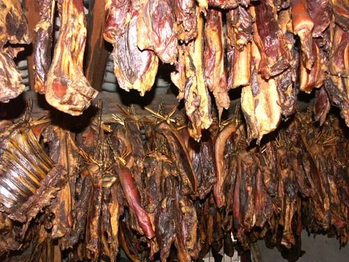 石門土家臘肉 石門土家臘肉是土家人民為延長豬肉保質(zhì)期而獨(dú)創(chuàng)的一種具有特殊風(fēng)味的地方名產(chǎn),是土家人的一種特色肉類食品,不僅便于保存,而且肉色好看,是土家人平時(shí)招待客人擺在席上的主菜。其特點(diǎn)脂香濃郁、皮色黃亮、肉色似火、紅艷喜人、滋味鮮美、營養(yǎng)豐富,入口時(shí)有一絲淡淡的煙熏味,奇香無比,切成薄片,顏色細(xì)膩分明,深淺紅色相間,食之回味無窮。 贊 (0) 39 151 生成海報(bào) 湖南辣醬板鴨 下一篇 2008-08-08 花溪榨筍 上一篇 2008-08-08 相關(guān)推薦