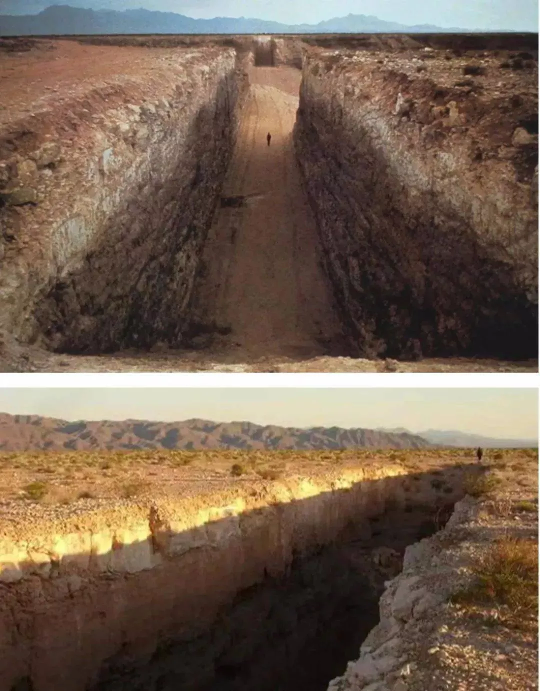 這件作品是在大地上挖出一條巨大的壕溝。這讓我想起曾在英國(guó)泰特現(xiàn)代美術(shù)館展出的一件作品,藝術(shù)家在水泥地上花費(fèi)很大功夫做出一條巨大的裂痕,開展后觀眾進(jìn)來一看,感覺不但布展還沒有完成,怎么連地面上的裂縫還沒修呢?!其實(shí)這就是作品。