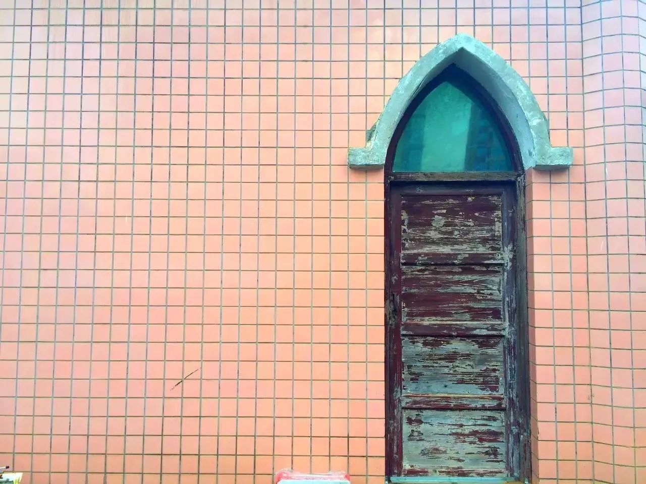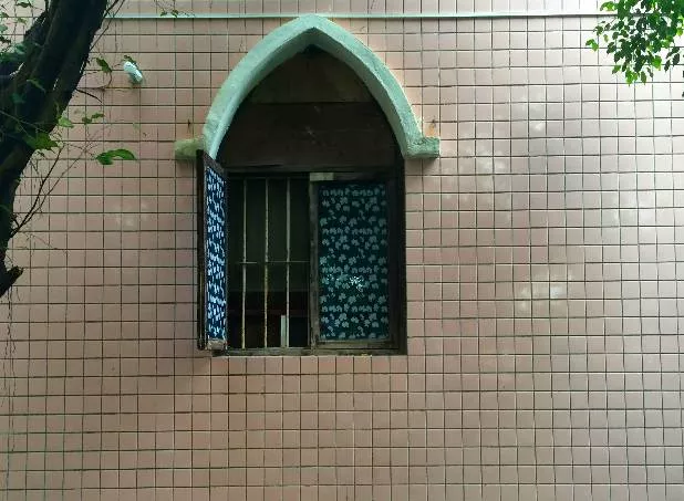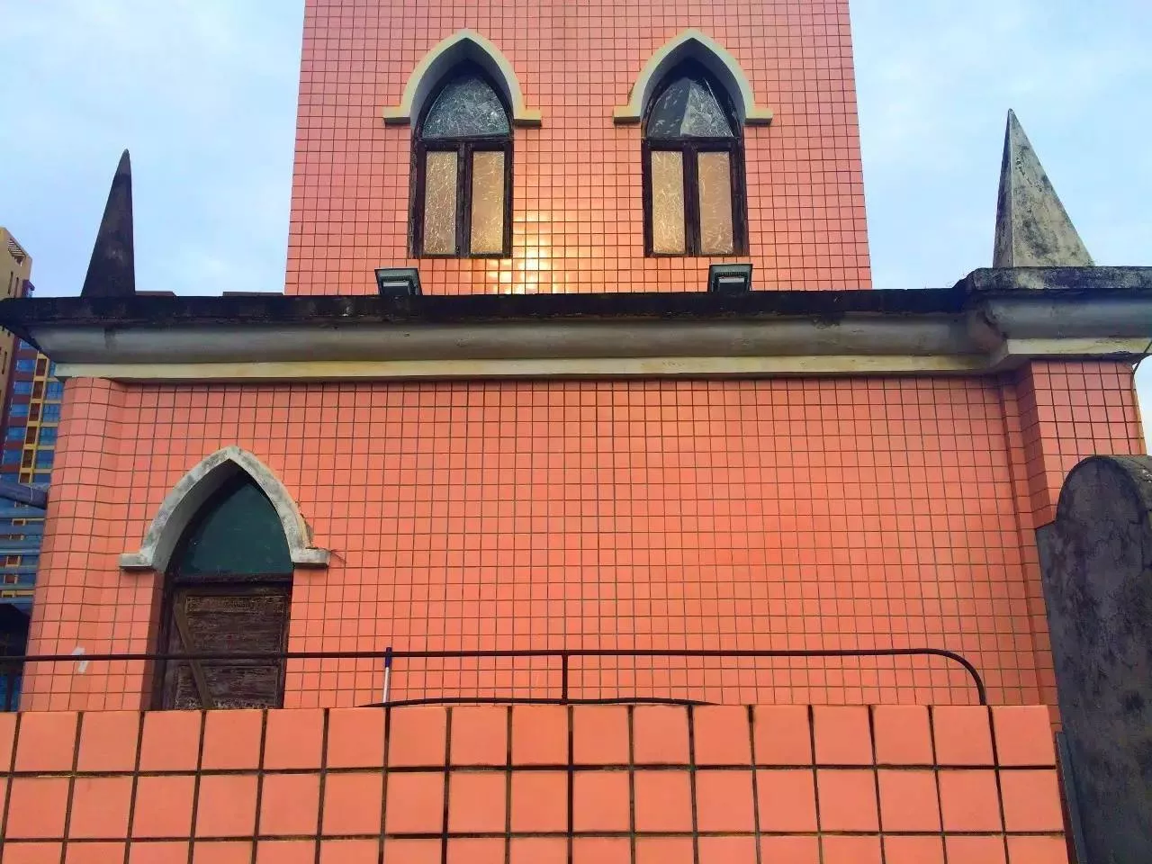 教堂的外觀貼滿(mǎn)了粉色的瓷磚