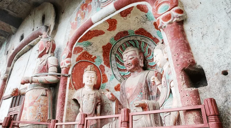 甘肅麥積山石窟位于甘肅省天水市麥積區(qū),麥積山是小隴山的一座孤峰,高142米,因山形似麥垛而得名,麥積山石窟始建于384~417年,存221座洞窟、10632身泥塑石雕、1300余平方米壁畫,譽為東方雕塑藝術(shù)陳列館,麥積山風(fēng)景區(qū)由麥積山、仙人崖、石門、曲溪、街亭溫泉5個子景區(qū)180多個景點組成。2014年6月22日,作為“絲綢之路:長安-天山廊道的路網(wǎng)”中遺址點列入《世界文化遺產(chǎn)名錄》。