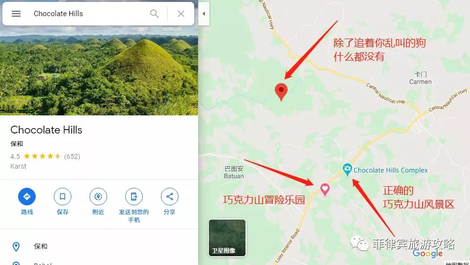 谷歌搜 Chocolate HillsComplex 才能正確導(dǎo)航到景區(qū)