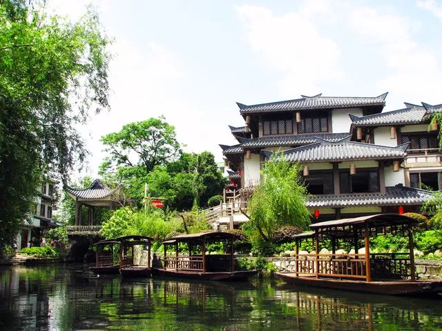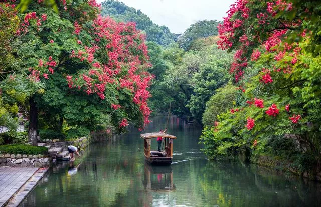 我們的船在水中央穿過,岸上不時地傳來孩子們的歡笑聲,大人們坐在石凳上,旁若無人地聊天,顯得是如此的親切、安詳,好像全世界的紛擾都與他們無關(guān)。導(dǎo)游告訴我們,興安已經(jīng)有許多外地人移居于此養(yǎng)老,只因?yàn)檫@里的水,這里的空氣。當(dāng)然,更重要的是這里的人,是如此的宜居。