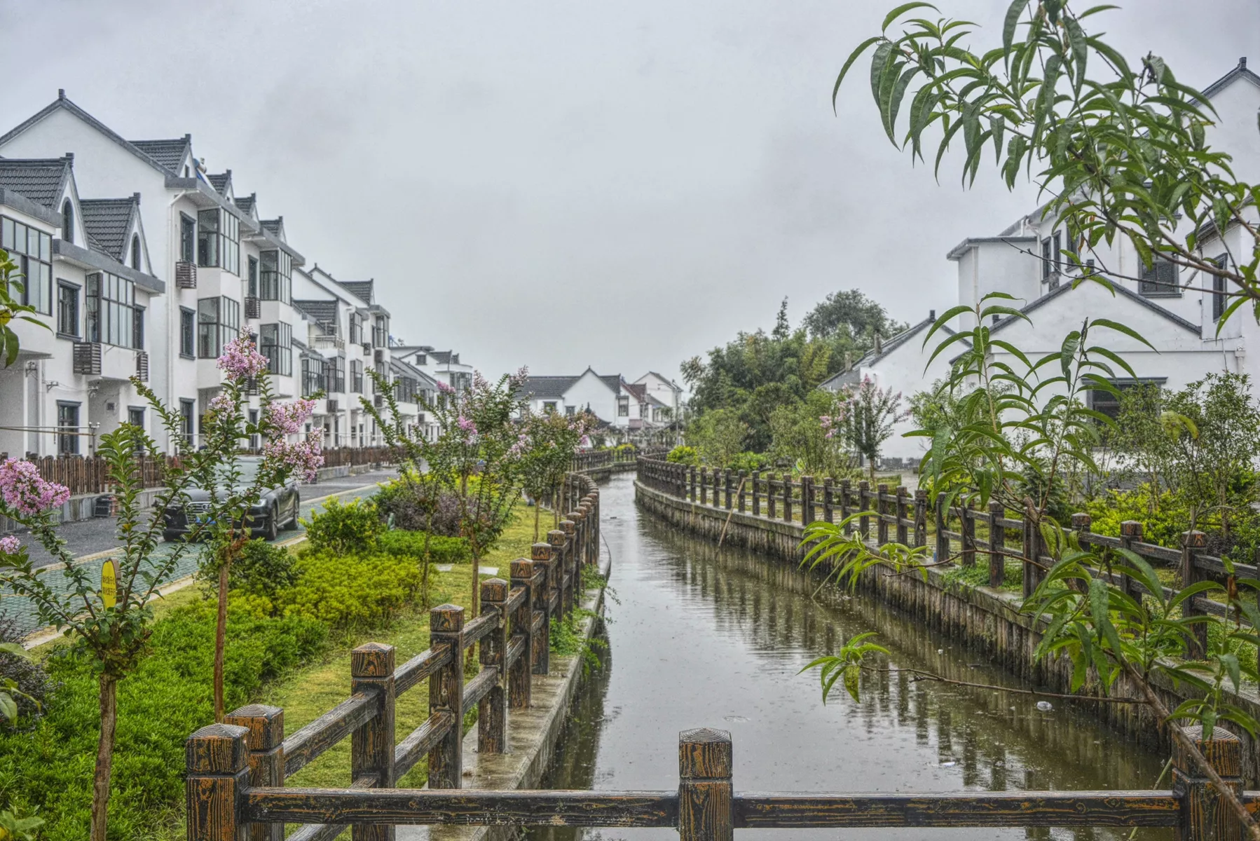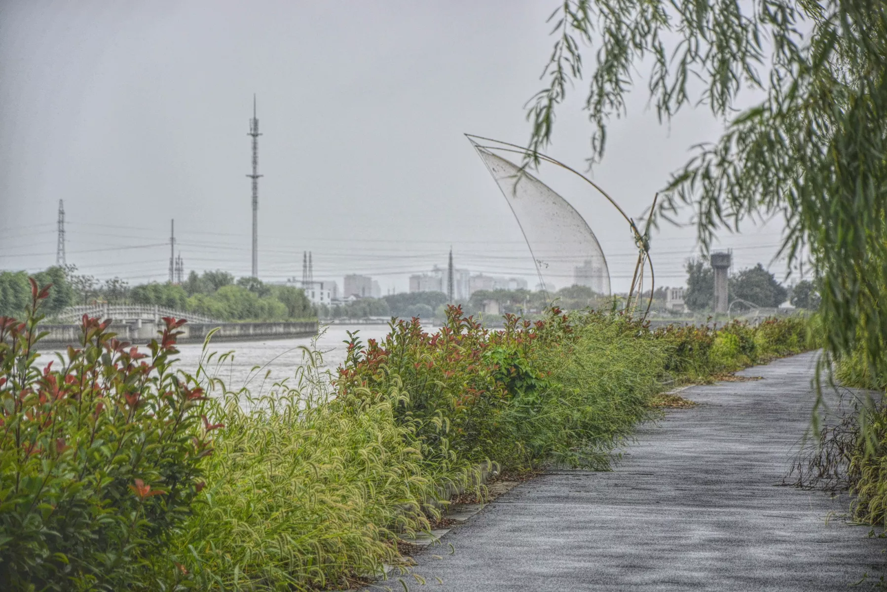 河岸旁還有大大的漁網(wǎng),想必河道中的魚兒也有不少。