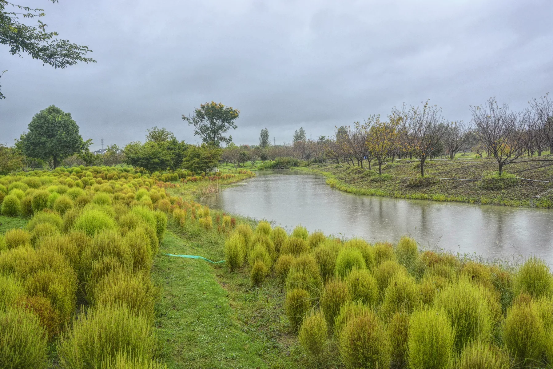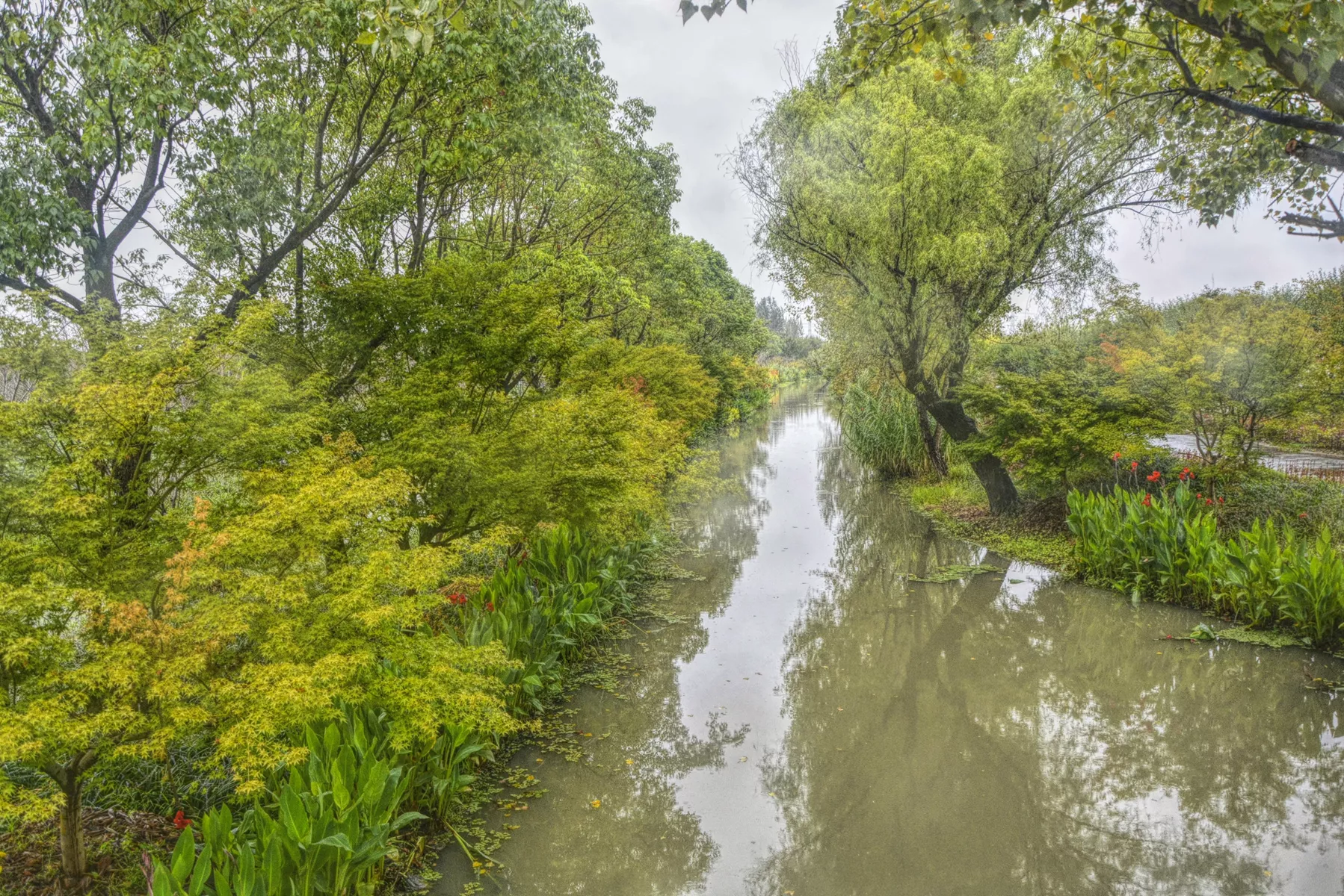 水系環(huán)繞,樹木林尋,這里有梅園、楓林、櫻花林和大面積的花海在一年四季中都有相應的花卉和林葉欣賞。