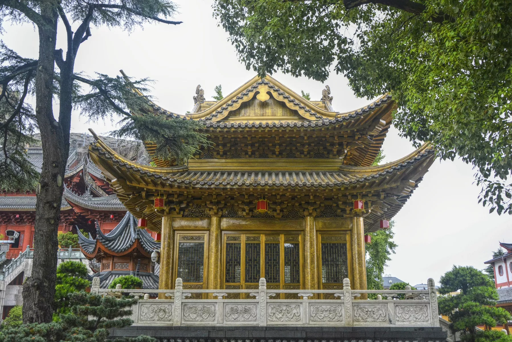 圓通寶殿-用黃銅制作重達150噸的殿中殿 寶殿中是用黃銅制作重達150噸的殿中殿,工藝精美,金碧輝煌展現(xiàn)銅工藝之一絕,殿中供奉的是一尊整塊1.8多噸重的新疆和田美玉雕琢而成的元代“靈雨觀音”圣像,“靈感靈應曾記當年傳逸典;雨珠雨玉更于遍界灑甘霖”,是不可多得的稀世鎮(zhèn)寺之寶。