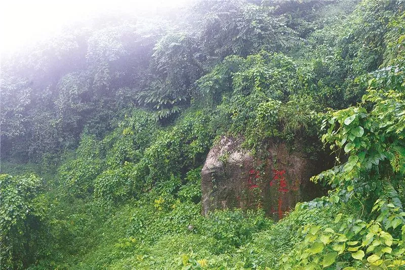 此刻,我站在太子亭,懷著沉重的心情凝望對(duì)面的懸崖。煙雨深鎖的宮女崖,片片樹葉凝珠如淚,猶顯凄冷。年深月久,那遍野的樹木與蔓藤,早就以一片生機(jī)盎然的碧綠掩蓋了數(shù)百年前的斑斑猩紅,一場(chǎng)集體自殺的悲劇沒有留下絲毫痕跡。我難以想象宮女們集體跳崖的慘烈情景,她們追隨皇太子逃至叱石巖,原以為此處只是人生驛站,沒想到這懸崖絕壁,竟成紅顏末路。