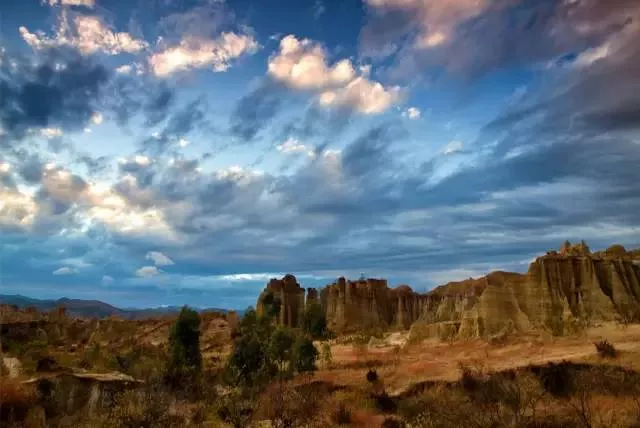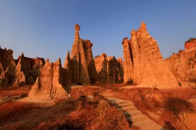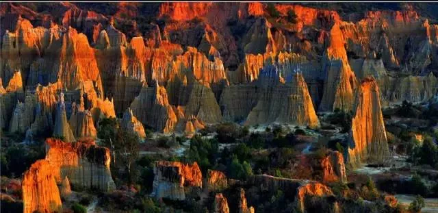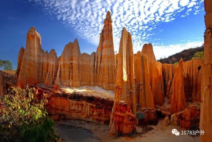又叫新華土林,地處元謀、大姚、牟定3縣交界的大山深處,位于元謀縣的新華鄉(xiāng)。浪巴鋪土林面積約1.4平方公里,它以其奇特而壯觀聞名于世——土林色彩豐富,頂部以紫色為主,中部呈灰白色,下部則以黃色為基調(diào),點綴以褐、灰、白、黃、綠、棕等顏色,置身其間,仿佛面對一個遠古的夢幻,“念天地之悠悠,獨愴然而涕下"的感受油然而生?!?/p>