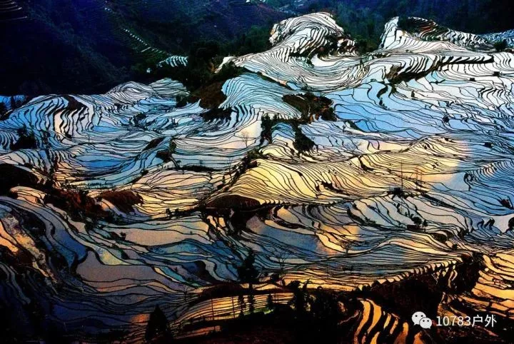 中國最大最美的梯田,濃郁的哈尼族和彝族風情。梯田每年11-4月放水,這時候是天光云影,天氣溫和,最適合攝影。
