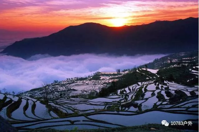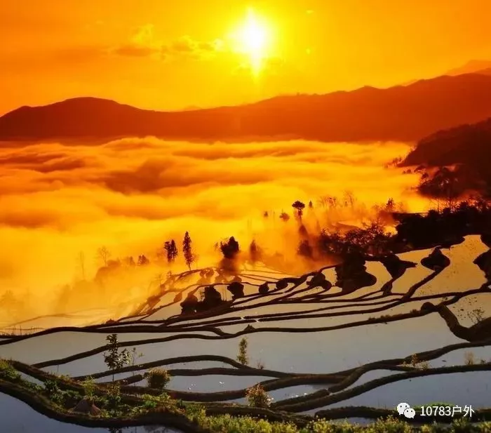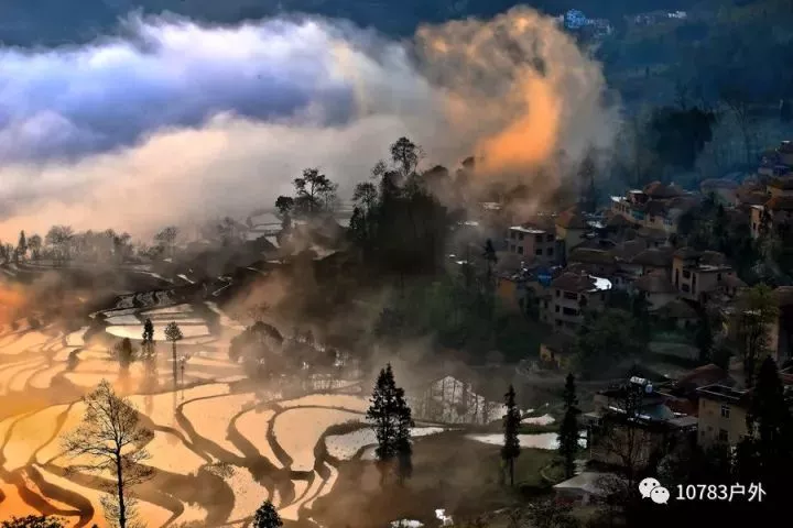 【多依樹梯田】:多依樹的日出是最美的,就算是不能看到日出,它的清晨,也是美到極至的一幅動態(tài)風景畫。而煙雨迷霧下若隱若現(xiàn)的多依樹村莊,則是現(xiàn)實中的夢幻仙境。