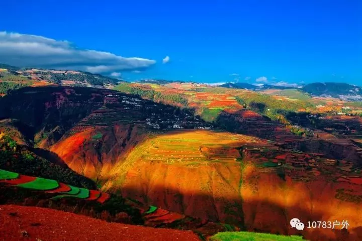這是一片壯觀的土地,被專家認為是全世界除巴西里約熱內(nèi)盧外最有氣勢的紅土地而其景象甚至比巴西紅土地更為壯美。去了東川,你會感嘆天地間還有如此濃烈的色彩。艷麗而斑斕,似乎能灼痛雙眼……