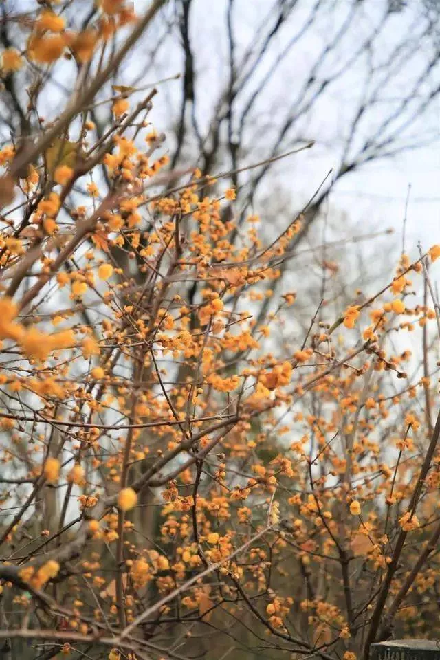 如今正值蠟梅花期,顧村公園的蠟梅已經(jīng)開了幾茬,廣福橋下便是公園里最佳的賞梅地點。樹上的蠟梅有的仍是含苞的骨朵,有的已經(jīng)開得燦爛,一陣風(fēng)吹過,便是滿枝黃金,幽香陣陣。