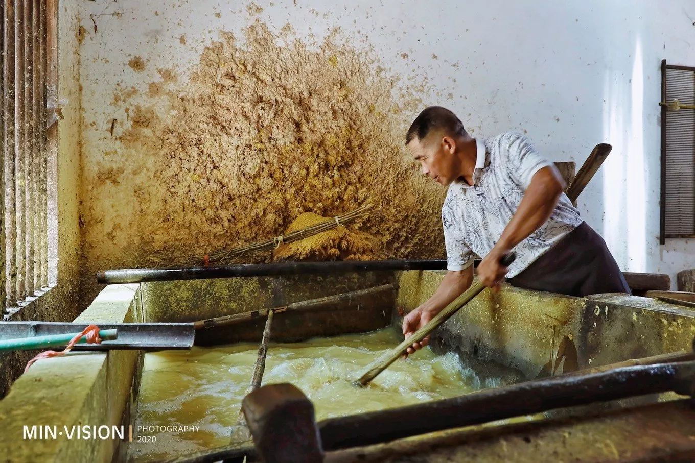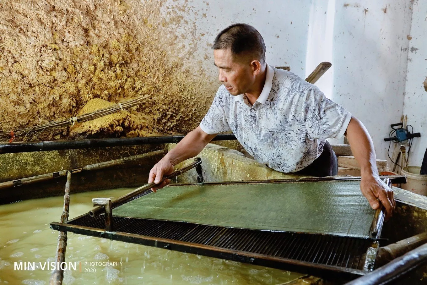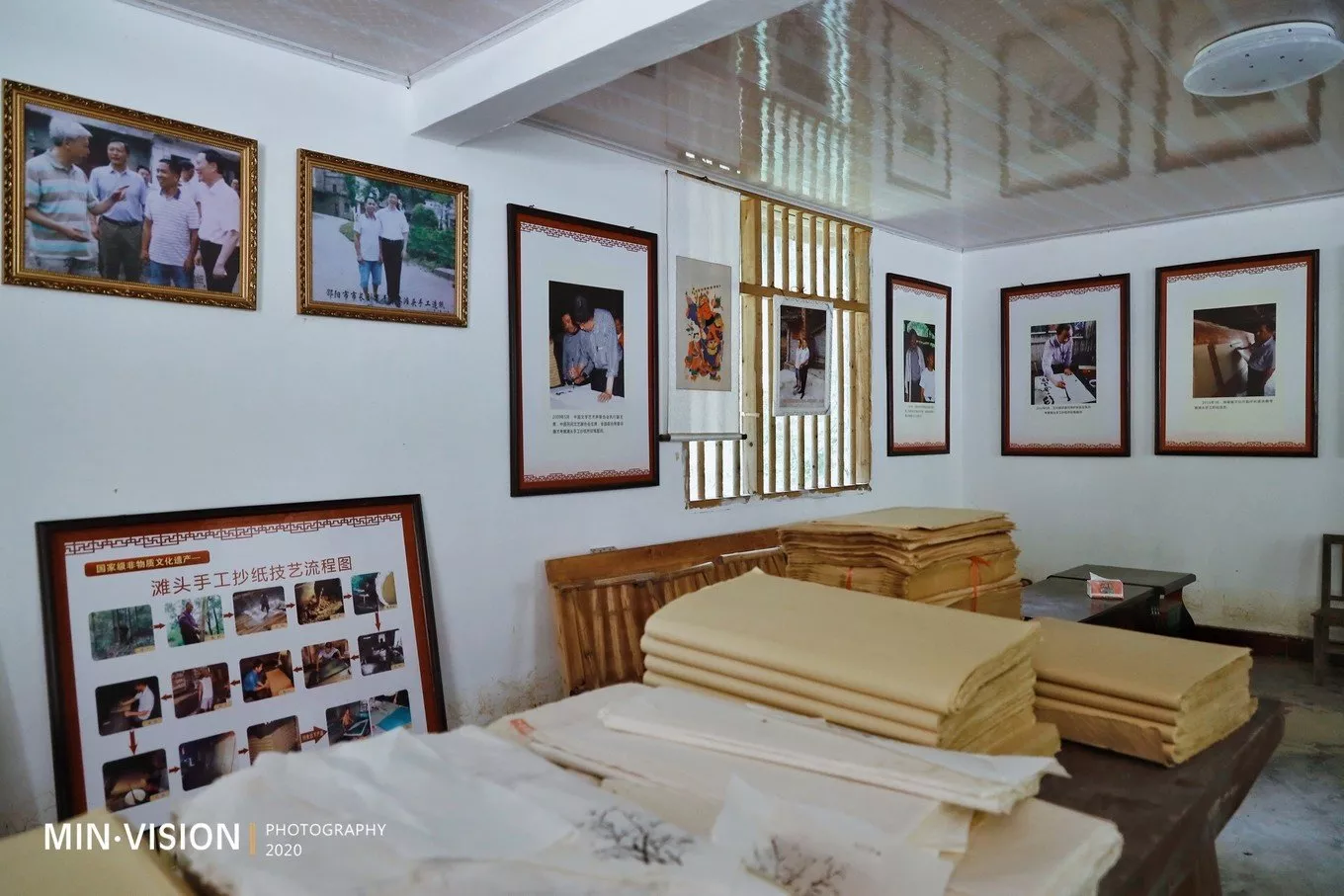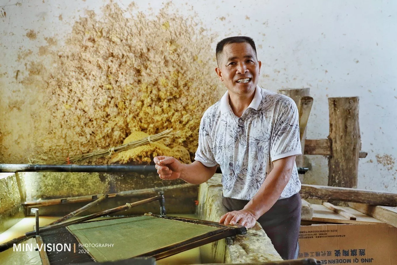 說(shuō)完灘頭年畫(huà),自然要追源用紙取自何處?!我想這也是多數(shù)人想聽(tīng)到的待續(xù)部分……2014年12月,湖南省隆回縣灘頭手工抄紙技藝被列入第四批國(guó)家級(jí)非物質(zhì)文化遺產(chǎn)代表性項(xiàng)目名錄,傳承人為該鎮(zhèn)桃林村人李志軍,他是“灘頭手工古法抄紙“的第46代傳承人。他的傳習(xí)所也已經(jīng)在原址重新改建,制作間更加安全、規(guī)范。