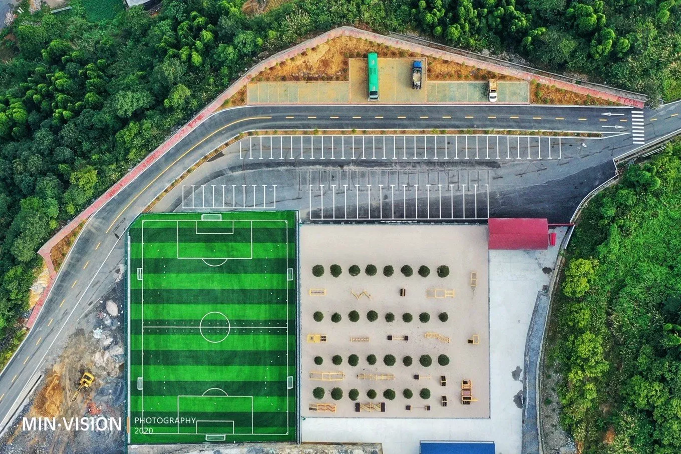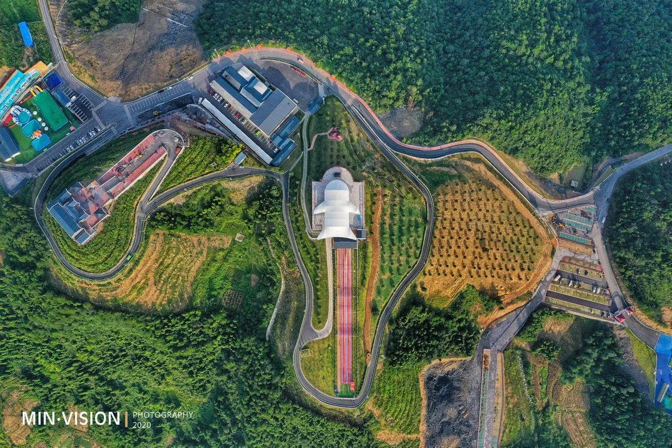 從小就喜愛(ài)足球的我,在航拍時(shí)看到這樣一塊足球場(chǎng)地,讓我興奮不已,急速飛到上空查看該區(qū)域。原來(lái)向家村拓展中心,這里擁有青少年 A、B、C、D 4個(gè)障礙賽場(chǎng)及沙池、樹(shù)池等場(chǎng)地設(shè)施,包括高空項(xiàng)目、半高空項(xiàng)目、場(chǎng)地項(xiàng)目、自然環(huán)境利用的主題項(xiàng)目等。這個(gè)拓展中心是我所見(jiàn)當(dāng)前理念最時(shí)尚、設(shè)備最先進(jìn)、項(xiàng)目最齊全、玩得令人心跳的戶(hù)外大本營(yíng)。