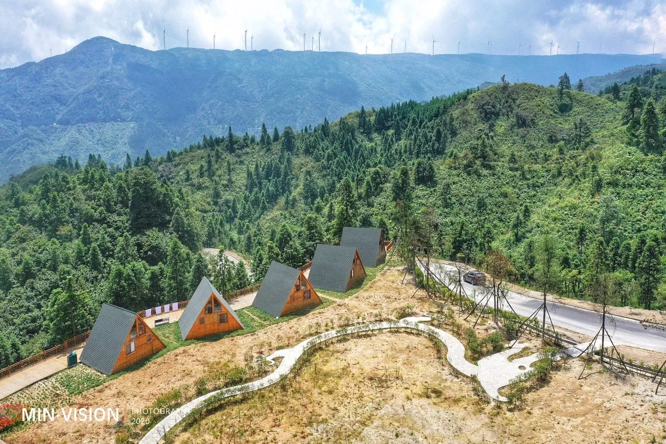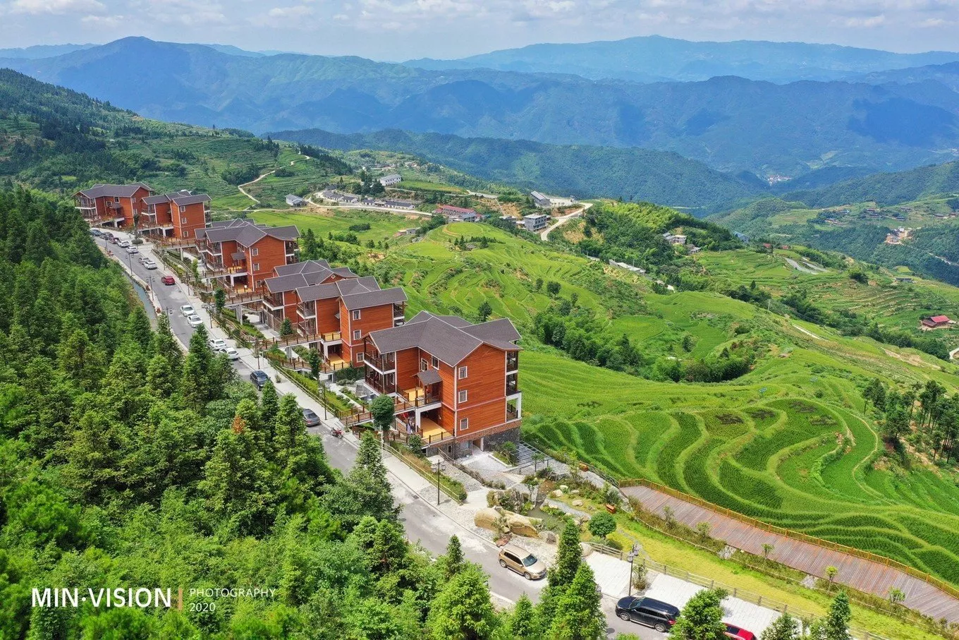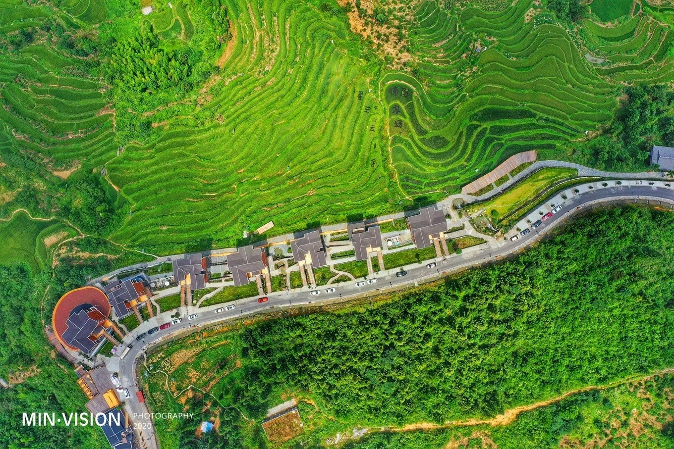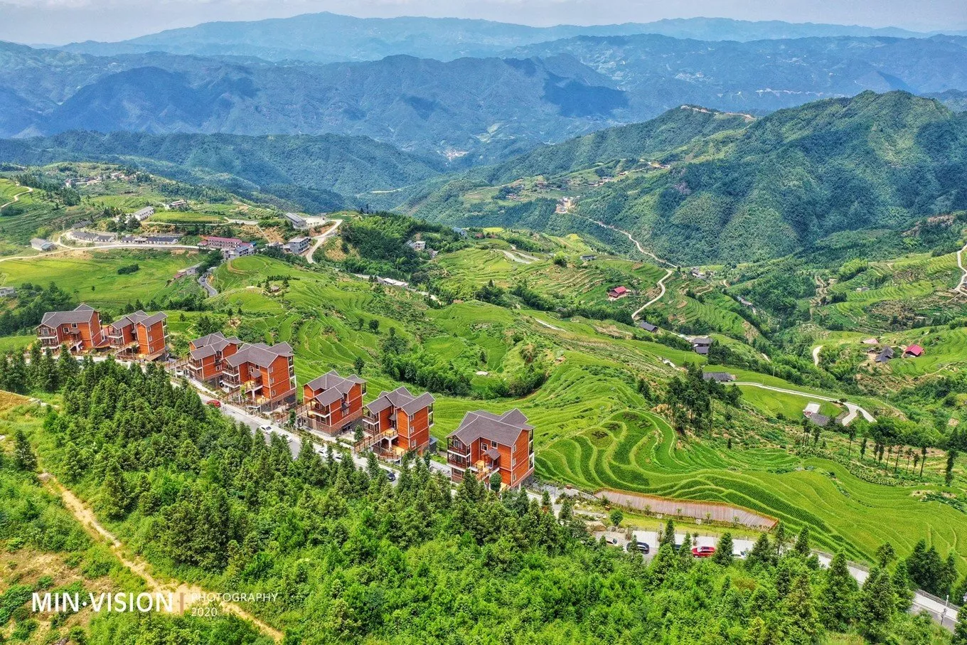 俯瞰梯田中有寫(xiě)“星空云舍”“梯田農(nóng)場(chǎng)”等字樣,這樣的高空可視設(shè)計(jì)也是用了心思的,不僅僅是一種情懷,更是在視覺(jué)上給人以歸屬感!我到了這里,我可以看到什么,我可以做什么,我可以感受到什么……一切的一切都有了!