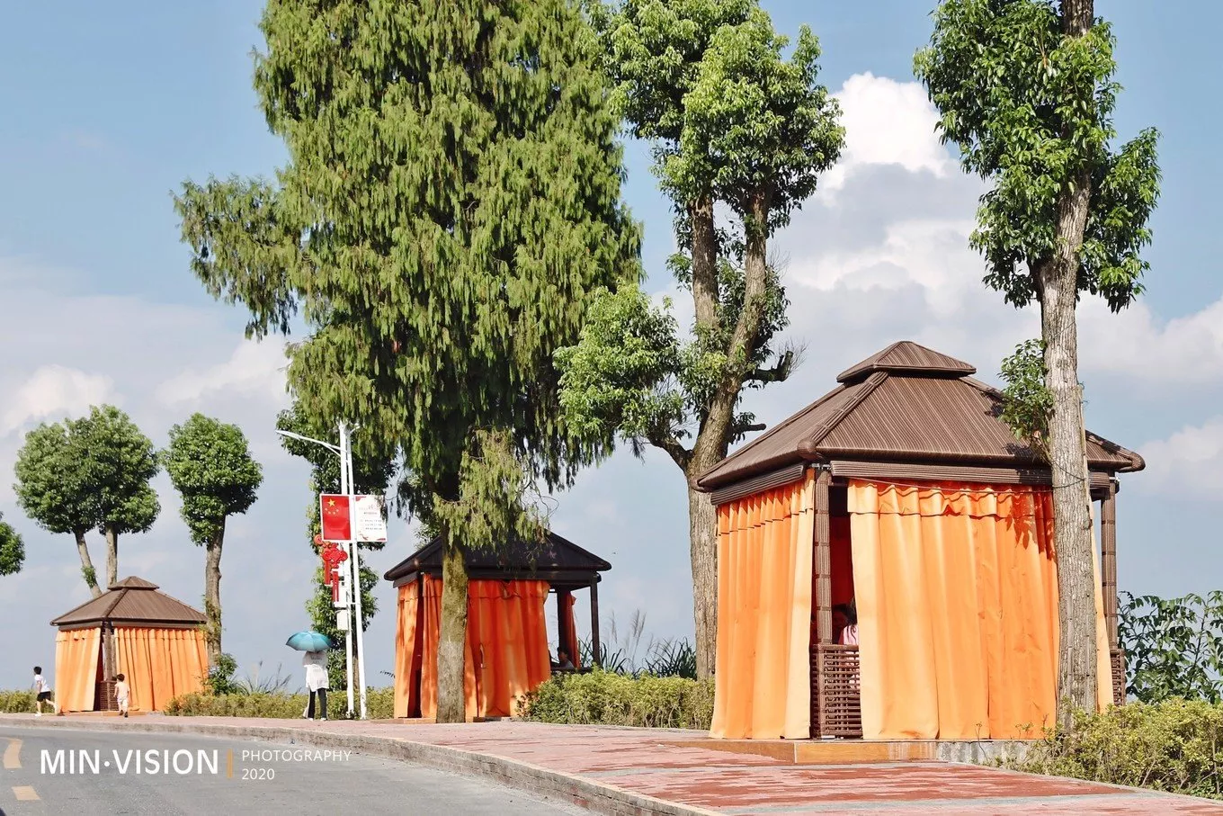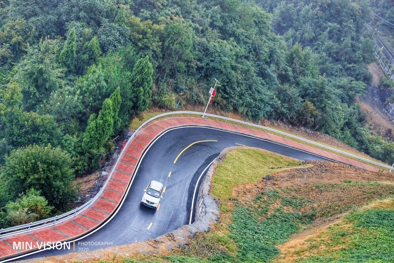 從向家村大門(mén)入口到山頂約3公里,充分證明了一條真理:要想富,先修路!一條山路修得如此完美,著實(shí)能給開(kāi)車(chē)的司機(jī)帶來(lái)些許的興奮。路雖然曲折,坡地起伏不定,但雙車(chē)道會(huì)車(chē)很安全!人、車(chē)道分開(kāi),山頂處還有幾間小涼亭,遮陽(yáng)避暑的好地方,坐在涼亭里可以飽覽山水風(fēng)光!