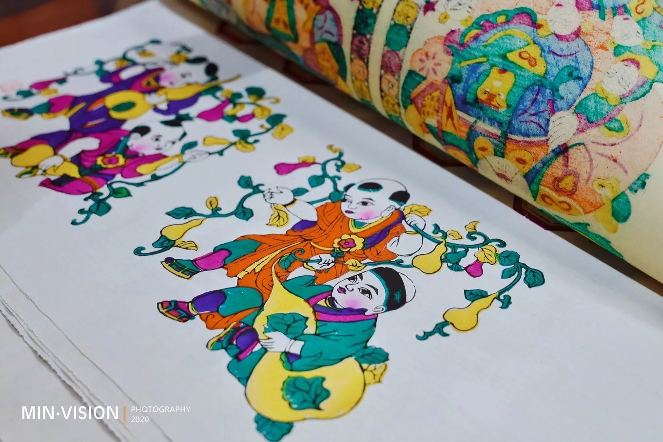灘頭年畫(huà)從造紙?jiān)系倪x擇、紙張的制造、刷底,到刻版、七次印刷、七次手繪,一張年畫(huà)的生產(chǎn)需要經(jīng)過(guò)二十多道工序。在調(diào)色上灘頭年畫(huà)的用水也很講究,是用當(dāng)?shù)氐牡叵滤尤敫葑铀疵耖g做豆腐時(shí)過(guò)濾出來(lái)的水)、白膠泥等秘方使色彩純度高、鮮艷、滲透性適當(dāng),可保存的時(shí)間長(zhǎng)。相信你會(huì)跟我一樣,情不自禁的想買(mǎi)幾張回家收藏,40元一張老鼠娶親的價(jià)格特很親民!合集畫(huà)冊(cè)也才1400元,集合了許多的經(jīng)典之作!
