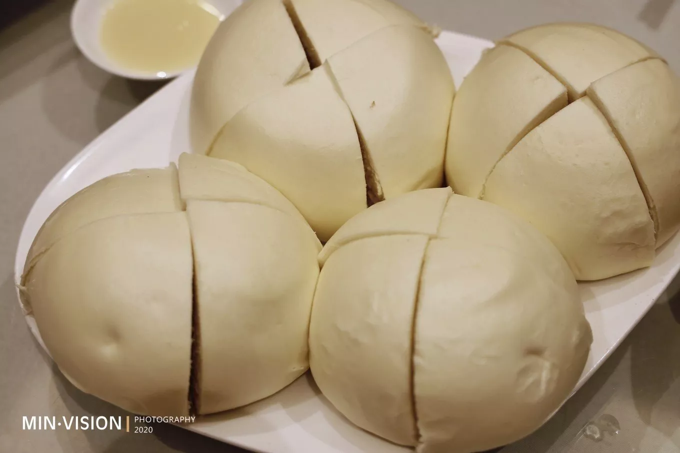 關(guān)于主食,特別要推薦現(xiàn)蒸出來(lái)的手工大饅頭,看似有點(diǎn)像山東大饅頭,但面更細(xì),蜂窩眼更小,吃起來(lái)還有種蛋糕的甜甜的味道,在沾一沾小盤(pán)內(nèi)的煉乳,頓時(shí)讓你對(duì)吃饅頭這件事由喜歡變成鐘愛(ài)!一個(gè)饅頭四瓣,停不下來(lái)的節(jié)奏……