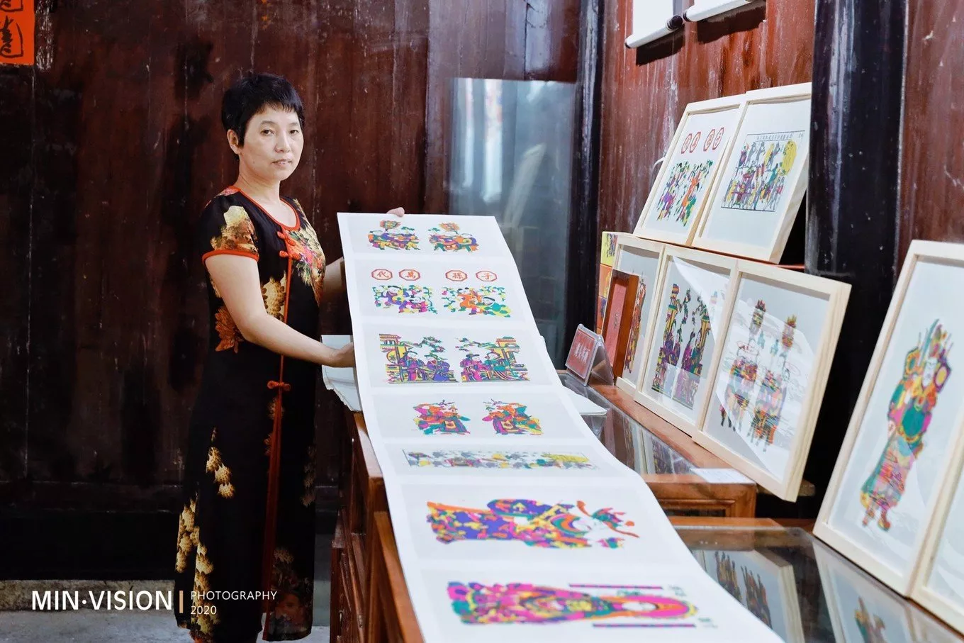 這里還設(shè)有當(dāng)?shù)財(cái)z影家協(xié)會(huì)和民俗協(xié)會(huì)等組織的掛牌處,方便會(huì)員來(lái)采風(fēng)。在展覽室中陳列有體現(xiàn)當(dāng)?shù)孛袼椎囊恍┦止ど唐贰?a href='/fuzhuang/' target=_blank>服裝服飾,墻上掛著名人合影照,長(zhǎng)條桌椅的設(shè)置,想必這里也經(jīng)常辦有會(huì)議