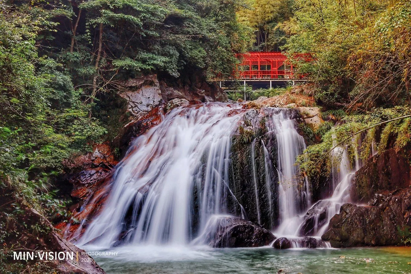 溯流而上先后為仙牛潭、金子潭、回灣潭、虎跳崖、龍過(guò)江,一道緊挨一道,步行相差不到10分鐘,瀑布落差由十幾米到上百米不等,互不相同,各具特色。從攝影角度說(shuō),慢門(mén)拍攝是能呈現(xiàn)最美的瀑布的方式。