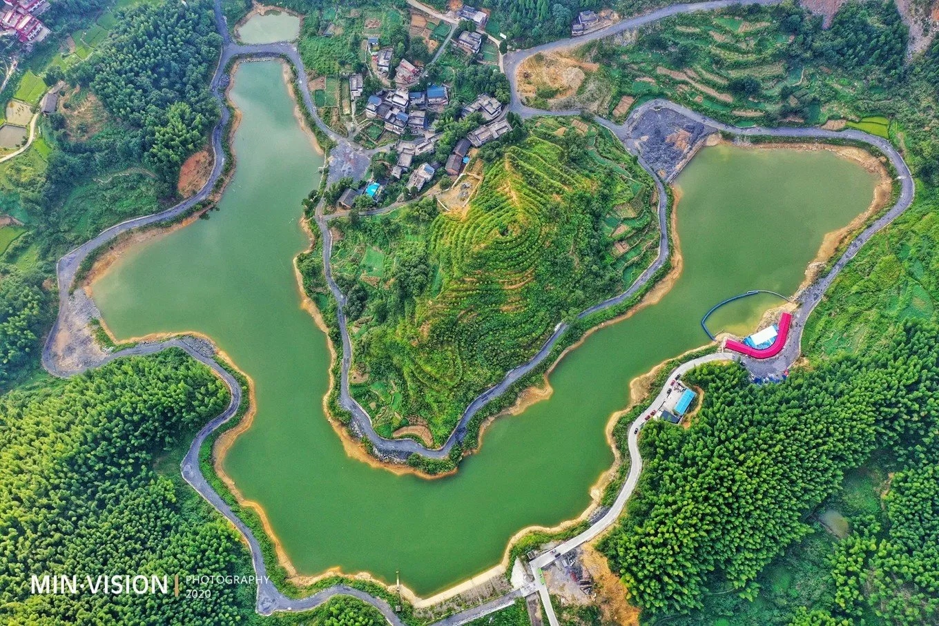 有人說(shuō)這個(gè)月亮湖,像牛頭,這個(gè)視角看確實(shí)很像!呼應(yīng)“牛天嶺”這個(gè)名字,展示了向家村無(wú)私奉獻(xiàn)、吃苦耐勞、奮蹄前行的“拓荒牛”精神。小島上種的滿(mǎn)是可認(rèn)領(lǐng)的櫻花樹(shù),想象在三月櫻花盛開(kāi)時(shí),一定非常美!