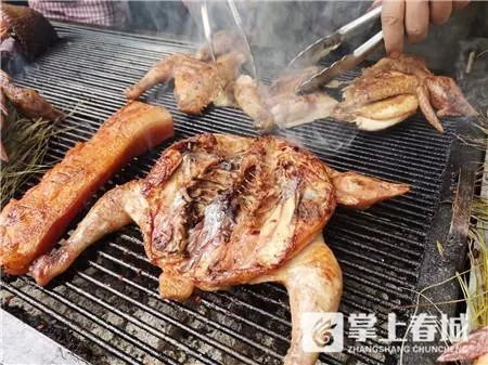 “來看看嘛,烤雞蛋、烤雞、烤五花肉樣樣都有。”剛走進(jìn)哈馬者彝鄉(xiāng)風(fēng)情美食街,記者就被小吃店老板的吆喝聲吸引了過去。小店的攤位上鋪滿了松針,青綠色的松針上擺滿了五花肉、豬肝、牛肉……食客絡(luò)繹不絕,有人問價后直接購買一整只烤雞,有食客迫不及待要求先品嘗一塊魚肉,還有的老饕已在路邊啃食烤玉米。