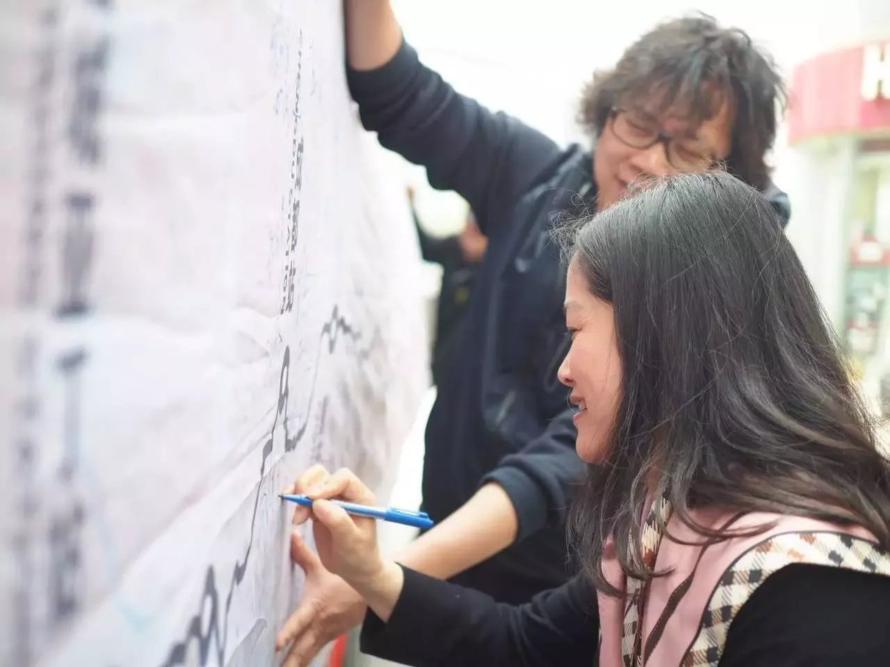 溫江區(qū)旅游局局長高曉春在國民公路G318旗幟上簽名