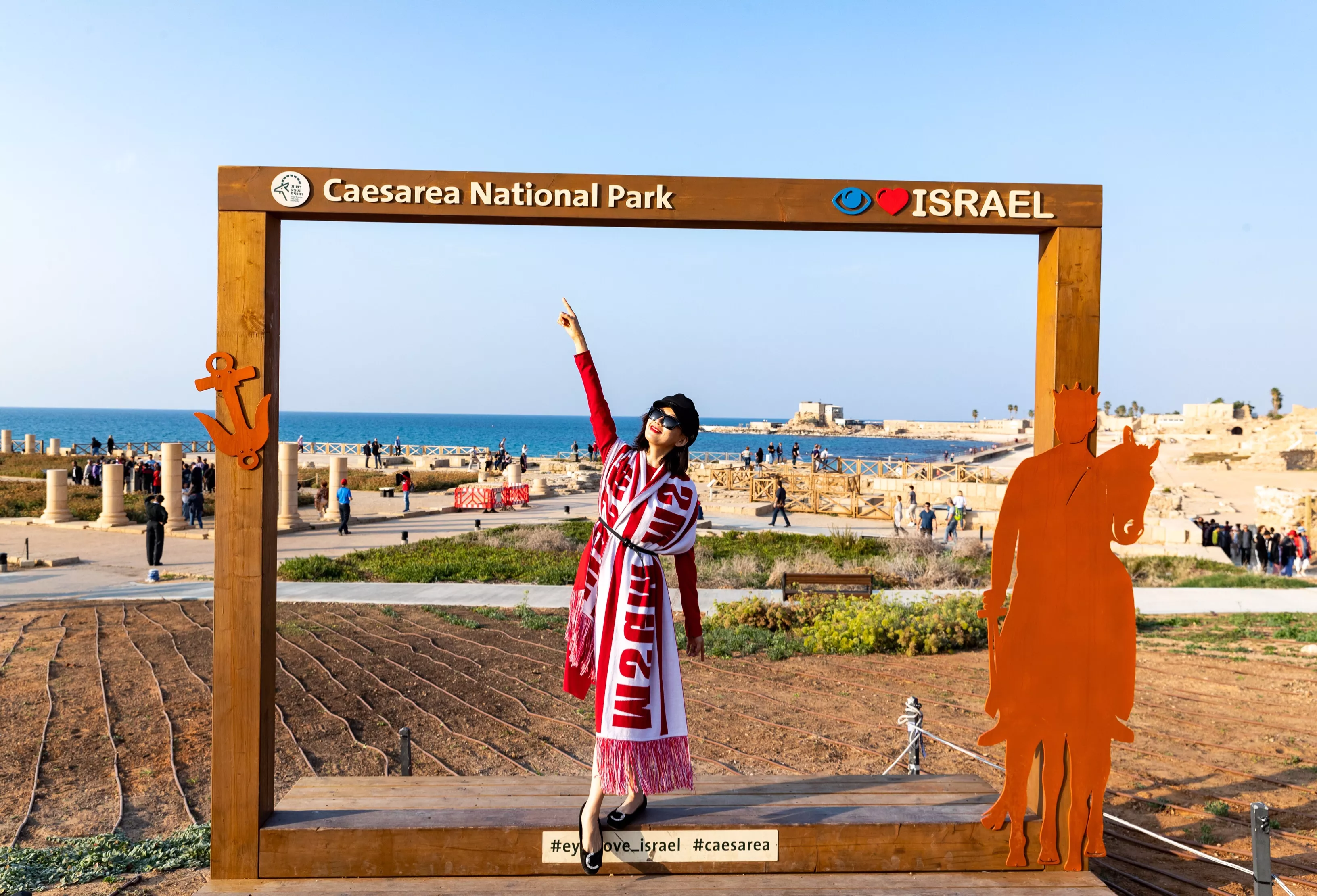 出劇院不遠(yuǎn),撲面而來的便是地中海的碧波晴天,清爽怡人。沙灘上還有一個(gè)網(wǎng)紅鏡框造型,打卡走起。