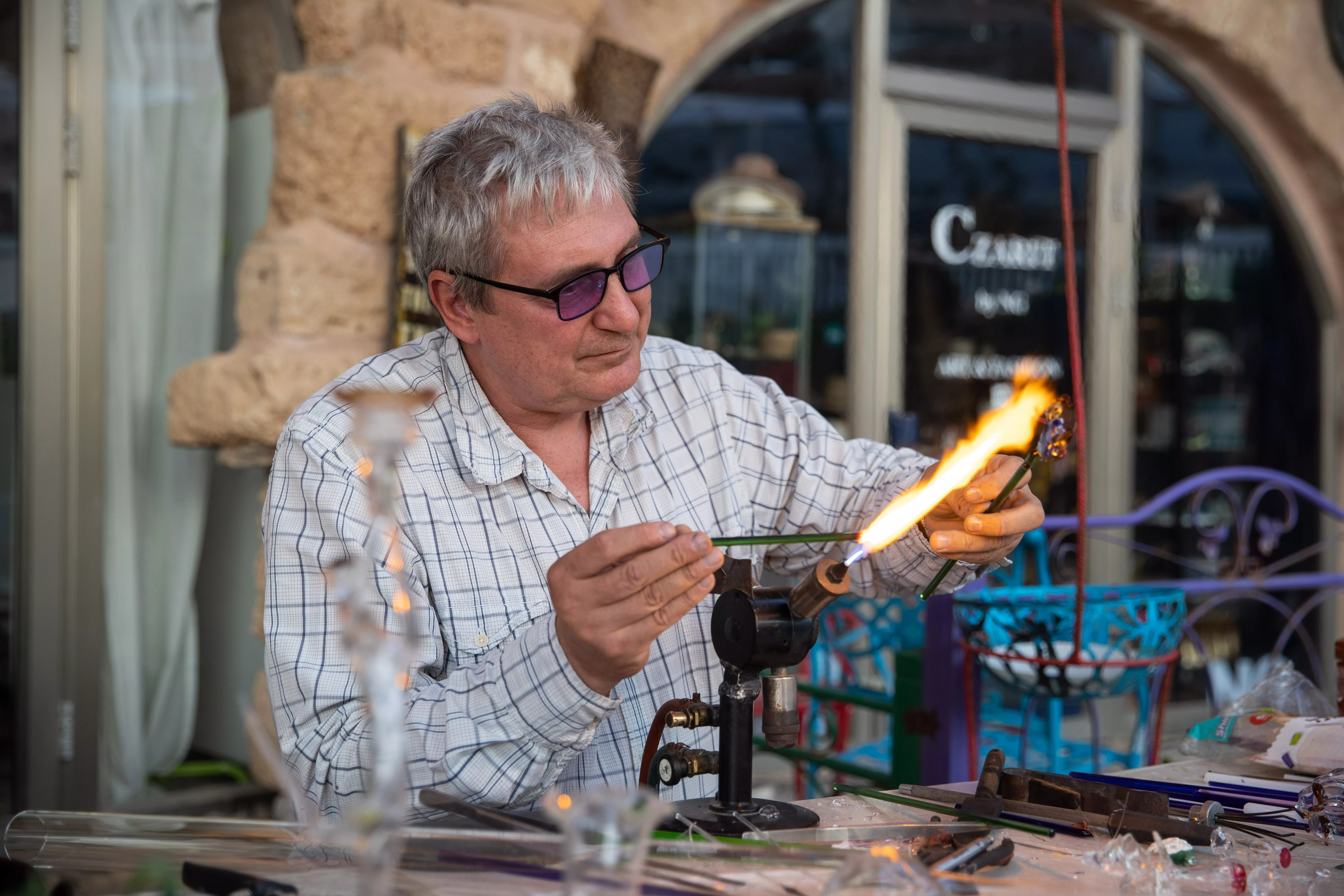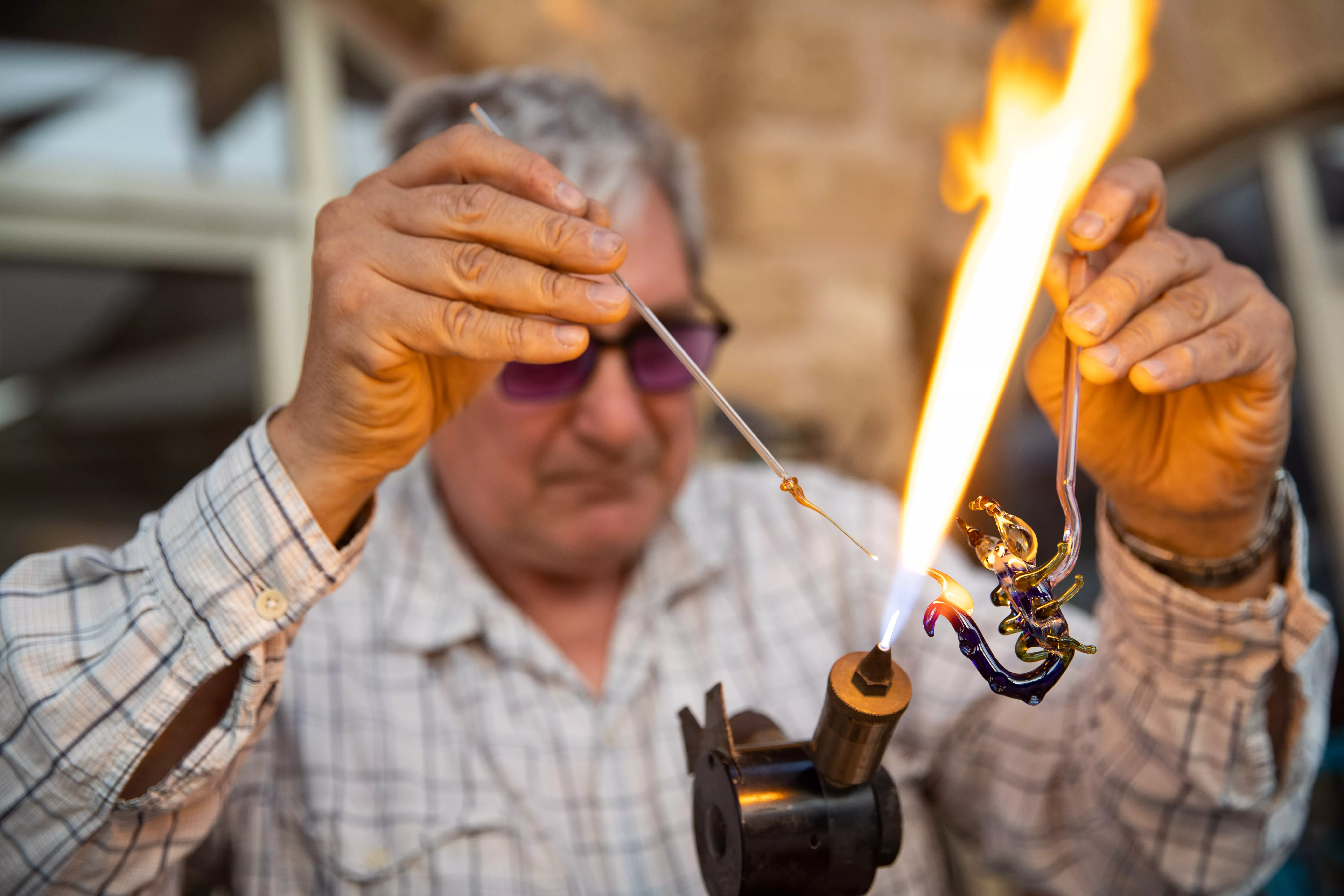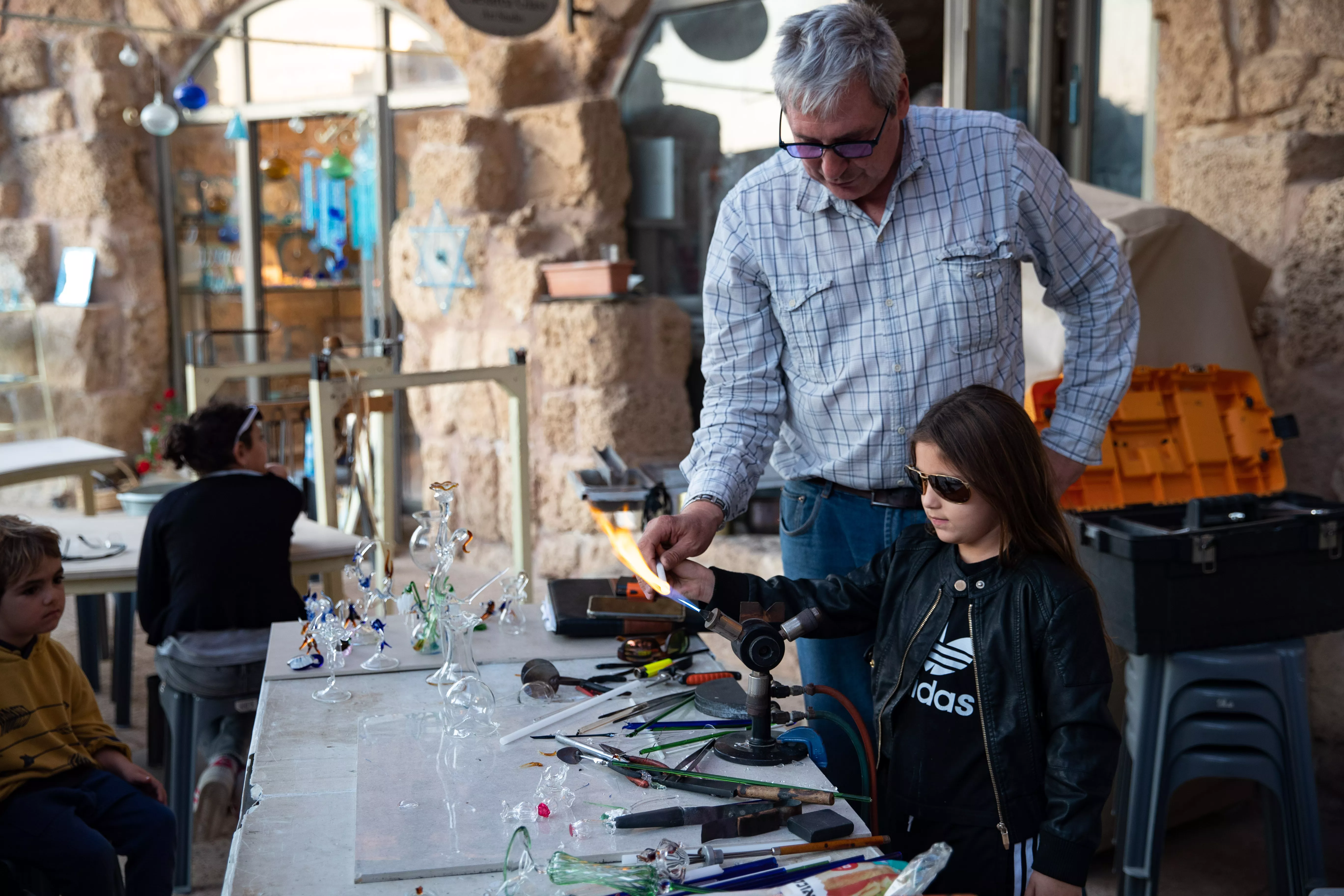 在海邊逛了會(huì)兒,我們回到岸邊。這里有處休閑中心,除了幾家知名海鮮餐廳,還有些小店供游客消遣娛樂。教小朋友體驗(yàn)燒制玻璃的這兩處,最受歡迎。