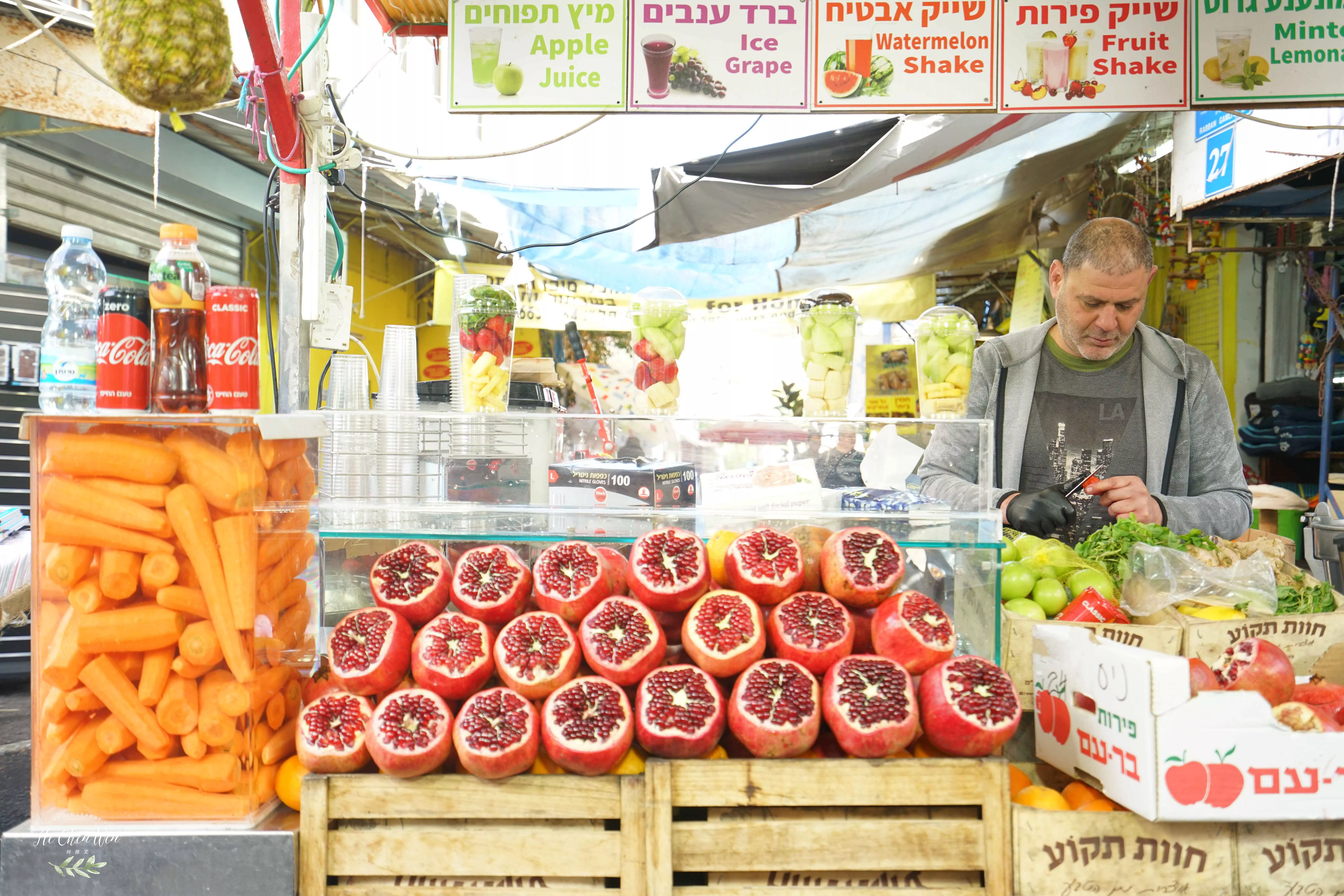 來以特拉維夫梅爾市場,感受著“人間煙火氣”。市場上人頭攢動(dòng),兩邊擺放著豐富的農(nóng)貿(mào)產(chǎn)品、特色的地域小吃和琳瑯滿目的旅行紀(jì)念品及藝術(shù)繪畫! 讓人不經(jīng)感嘆。資源匱乏,國土面積有一半以上,地處沙漠的以色列,竟可以產(chǎn)出如此豐富多樣的農(nóng)產(chǎn)品,真可謂是“沙漠的奇跡”!