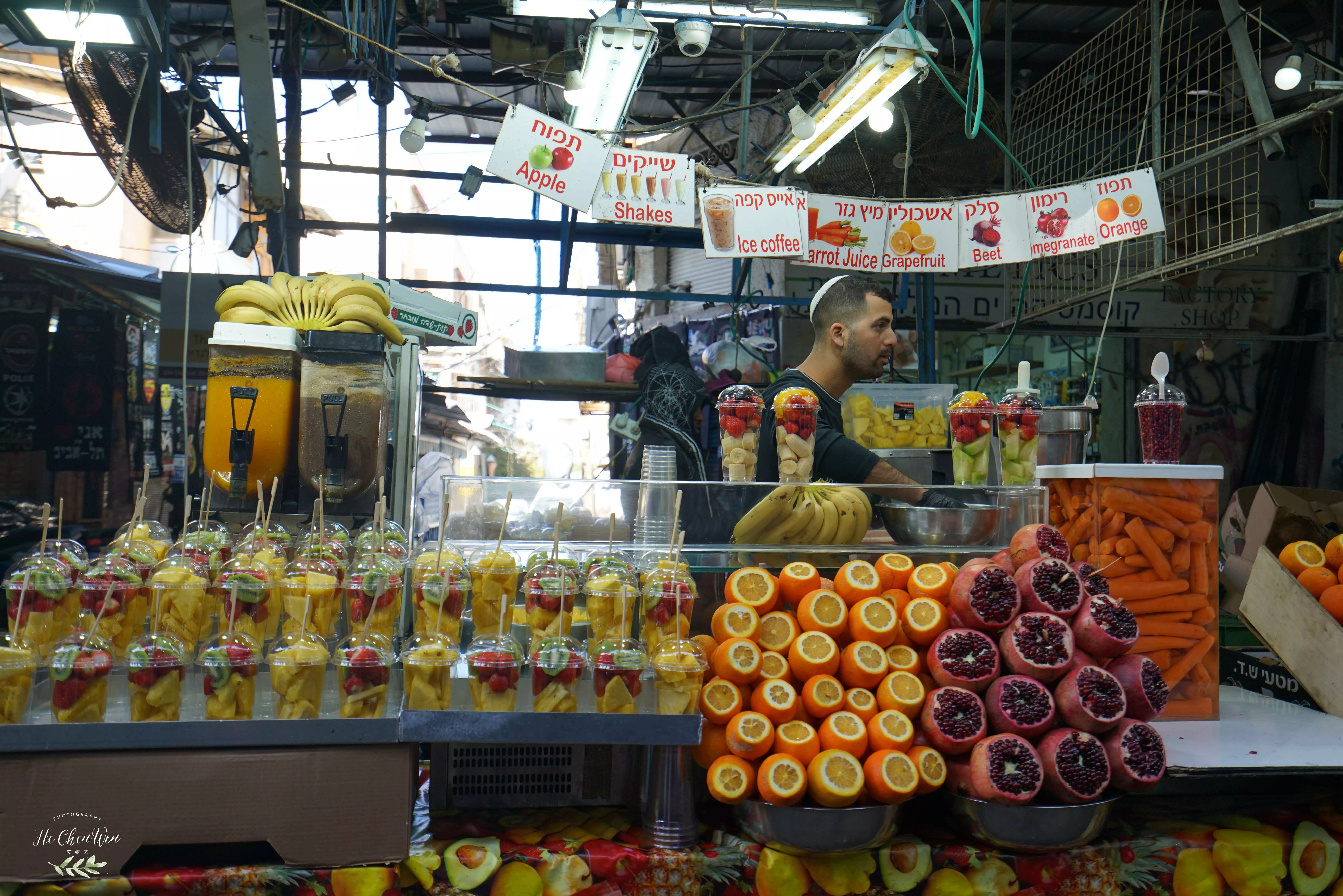 那么來特拉維夫,一定要去當(dāng)?shù)馗惺芟率袌?。在特拉維夫有三個(gè)露天市場,靠近藝術(shù)文青潮人怪咖雜居的街區(qū)的Levinsky市場,雅法古城附近的跳蚤市場以及市中心附近的卡梅爾市場。卡梅爾市場是相對來說的規(guī)模最大的,種類也最為豐富,當(dāng)然客人也是最多的。