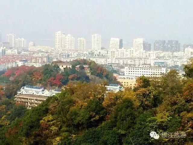 陽光溫暖而明亮,風(fēng)舒爽又清新。舉目之間,山林呈現(xiàn)出斑斕的色彩,黃色的梧桐,紅色的楓葉,還有那些依然碧綠的翠竹。最醒目的是那些紅葉,在夕陽的余輝中,顯得更加紅艷。站在塔下臺(tái)基,可俯瞰椒江全城,風(fēng)景甚為美麗。