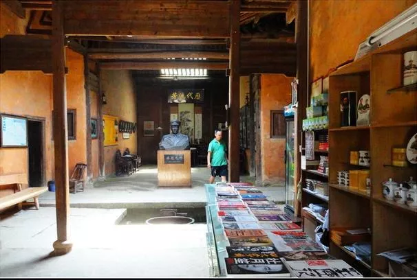 一進“帥門”,右邊是出售紀念品的柜臺,左邊是展覽的簡介,介紹了林彪的家庭情況。穿過屋子中央的天井就是客堂,