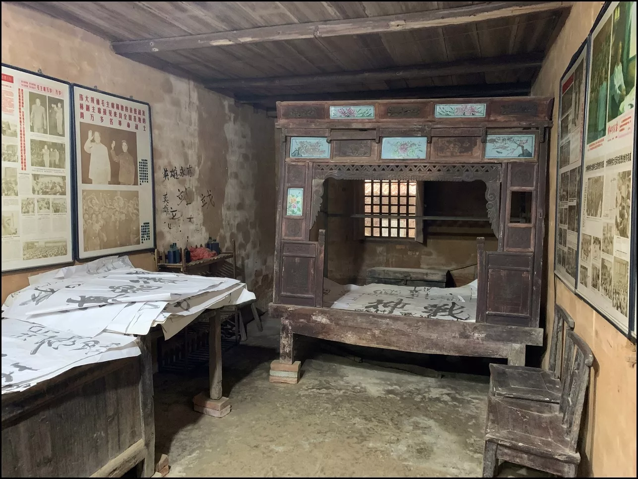 林彪出生地還要往上走,地勢較高。下面有個池塘,面積不小,池水很淺。老宅始建于明代,擴建于清朝嘉慶年間。一進三幢,磚木結(jié)構(gòu),占地300余平方米,有大小天井三口,房間、堂屋、茶廳共19間。當時,林彪家只住其中三間