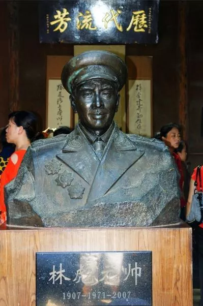 堂前安放著一尊2007年塑造的著元帥服的林彪半身銅像,