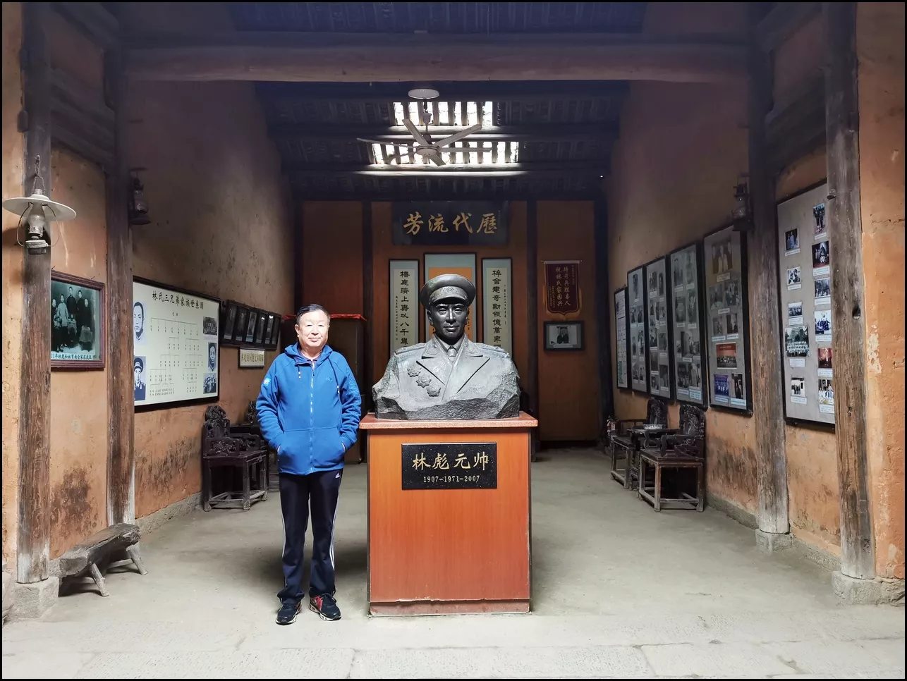 剛走進“帥門”,見一值守的老人,清瘦、高挑,模樣酷似林彪,尤其是那兩道濃眉和尖尖的下巴??隙ú皇翘匦脱輪T,因為林彪沒有那么大!試探著詢問之后,得知他正是林彪的親侄子林從安。
