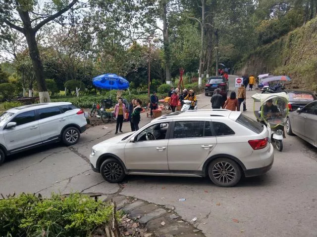 美中不足的是,狹窄山路的兩邊有很多私家車像排長蛇陣般停放在并不寬敞的路面上, 每當車輛離開時就會有調(diào)頭轉(zhuǎn)向動作,而山道又確實不寬敞,三三倆倆的游人也不少,所以,對于周邊通行環(huán)境的安全來說,又是否會有些影響呢?筆者當時在現(xiàn)場還發(fā)現(xiàn)個別車主不知是由于自身技術(shù)原因缺乏,還是文明意識缺失,將車輛的停放位置過于靠近路中間,以致其他車輛通過時異常艱難,有女性車主因為遇上此類緣故而無法行駛,只得由被堵在后面車輛上的司機,小心翼翼的代為開出困境,其狀可謂十分尷尬。