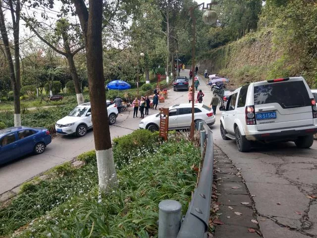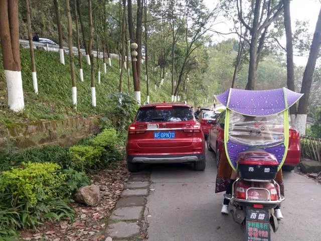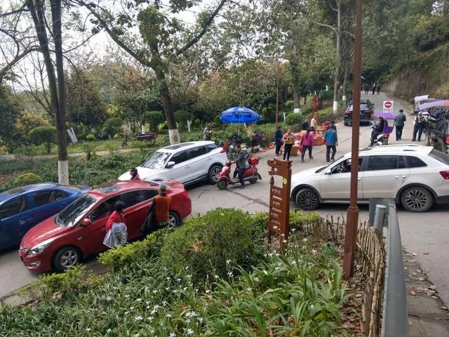 遭遇通行不便而十分尷尬的又豈是各路車主呢,眾多扶老攜幼,登山觀景的升斗市民才是對此情況頗感無奈呵,原本帶著歡快愉悅的心情和親人朋友進山游玩,哪里會想到在綠蔭蒼蒼,郁郁蔥蔥,風(fēng)光秀麗,自然天成的狹窄山道中會有如此之多的車輛停放,不要說駐足道旁欣賞美景,就連正常的走路都是提心吊膽的!隨時都有車輛從路邊進出轉(zhuǎn)向,倒車轉(zhuǎn)彎,遇到態(tài)度好的司機還曉得輕言細語的請行人讓下,遇到?jīng)]有素質(zhì)的車主就是直接鳴喇叭,在景區(qū)寧靜清閑的氛圍里是異常刺耳,甚至還有極少數(shù)的司機會出言不遜,讓人不禁懷疑,這究竟是龍角山4A景區(qū),還是路邊停車場???