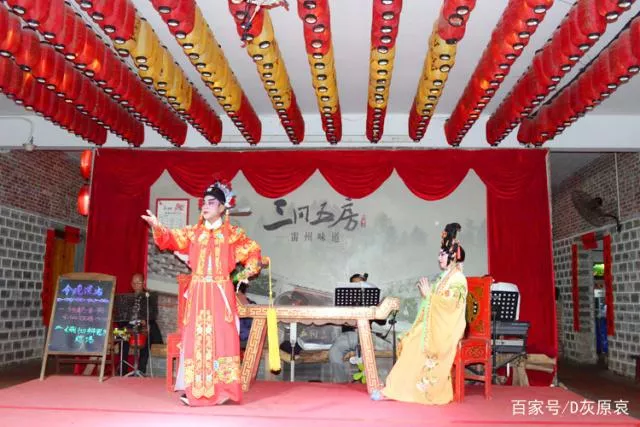 坐在“三間五房”的四合院里,主內(nèi)堂,有個(gè)小舞臺(tái),其實(shí)該說是個(gè)戲臺(tái),會(huì)看到演出--湛江地區(qū)的特有戲種--雷劇,可以吃美食,看雷劇,還能感受到濃濃的鄉(xiāng)土情懷。