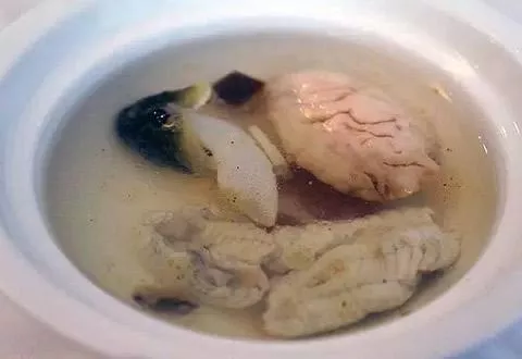 清湯脫肺 江蘇 ? 蘇州 ? 常熟 江蘇常熟名菜“清湯脫肺”為1920年山景園名師朱阿二創(chuàng)制而成,取鯖魚內(nèi)臟去肺為主料,配之火腿、筍片、香菇等烹制成清湯,魚湯為淡白色,魚肝粉紅色,湯肥而糯,魚肝酥嫩,味鮮而香,在當?shù)仄毡槭艿綒g迎。 贊 (0) 39 151 生成海報 幢鍋油雞 下一篇 0001-01-01 高莊豆腐干 上一篇 0001-01-01 相關推薦
