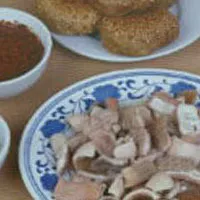 爆肚是北京風(fēng)味小吃中的名吃,多為回族同胞經(jīng)營。爆肚早在清乾隆年代就有記載。過去和現(xiàn)時(shí),每當(dāng)秋末冬初,北京的清真餐館和攤販就經(jīng)營爆肚。北京天橋有“爆肚石”,門框胡同有“爆肚楊”,還有“爆肚馮”、“爆肚滿”等最為出名。 爆肚是把鮮牛肚(指牛百葉和肚領(lǐng))或鮮羊肚洗凈整理后,切成條塊狀,用沸水爆熟,蘸油、芝麻醬、醋、辣椒油、醬豆腐湯、香菜末、蔥花等拌制的調(diào)料吃,質(zhì)地鮮嫩,口味香脆。 羊爆肚的吃法在過去很講究,要按羊肚部位選料加工成肚板、肚葫蘆、肚散丹、肚蘑菇、肚仁等,顧客愿吃哪個(gè)部位,隨便選擇。爆熟的時(shí)間因部位的老嫩程度不同而有差異,最鮮嫩的部位幾秒鐘即熟。近年來由于食者人眾,又加肚子全是鮮貨,不易保管,加上鮮肚貨源難以解決,因此分部位供應(yīng)的餐館或攤販,幾乎絕跡。 爆肚除肚子要新鮮外,功夫全在“爆”。爆的時(shí)間要恰到好處,欠火候或過火候,會出現(xiàn)過生或過熟而不脆,甚至咬不爛。故《燕都小食品雜詠》中詠:“入湯頃刻便微溫,佐料齊全酒一樽。齒鈍未能都嚼爛,囫圇下咽果生吞。”還說:“以小方塊之生羊肚入湯鍋中,頃刻取出,謂之湯爆肚,以醬油蔥醋麻醬汁等蘸而食之,肚既未經(jīng)煮熟,自成極脆之品,食之者,無法嚼爛,只整吞而已。”因此,它的質(zhì)量標(biāo)準(zhǔn)是“脆嫩”,不同的部位要掌握不同的火候。 爆肚過去幾乎全部是回民經(jīng)營,用的羊肚必須回民宰殺,收拾得也十分干凈,有異味的肚子棄之不用,因此很有信譽(yù),特別是梨園界的名角無不十分鐘情爆肚。梅蘭芳、馬連良、小蘑菇、小白玉霜、李萬春等名流無不喜食。爆肚又脆又鮮,不油不膩,據(jù)說還可治胃病。吃爆肚的人如會喝酒,總要喝二兩,喝完酒,吃兩個(gè)剛出爐的燒餅,確實(shí)是一大快事。所以老北京都?xì)g喜吃爆肚,特別是農(nóng)歷立秋之后,北京人講究“吃秋”,就有“要吃秋,有爆肚”之說。 爆肚最早在清乾隆年間就有記載,多為回族同胞經(jīng)營。北京比較有名的有天橋的爆肚石,東安市場的爆肚王、后門的爆肚張,其他還有爆肚楊、爆肚馮、爆肚滿等。 羊爆肚的吃法在過去很講究,要按羊肚部位選了加工成肚板、肚葫蘆、肚散丹、肚蘑菇、肚仁等,隨顧客的選擇。爆熟的時(shí)間也因部位不同而不一樣。近來由于受到歡迎,而且鮮肚貨難以保證,象以前分部位供應(yīng)已經(jīng)沒有了。爆肚除要新鮮以外,功夫在爆上,爆的時(shí)間要恰倒好處,爆肚又脆又鮮,吃爆肚的人要是會喝酒,總要喝二兩,再吃兩個(gè)剛出爐的燒餅,特別是老北京有“要吃秋,有爆肚”的說法很講究在立秋的時(shí)候吃爆肚。梅蘭芳、馬連良、小蘑菇、小白玉霜、李萬春等梨園名角就很喜食爆肚。