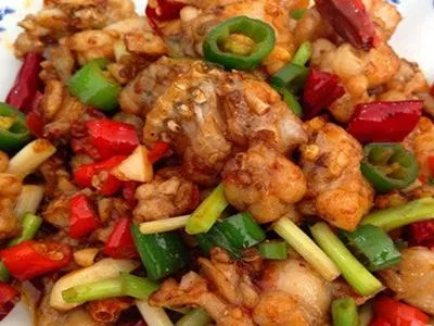 牛蛙細嫩,麻花脆香,麻辣味厚。